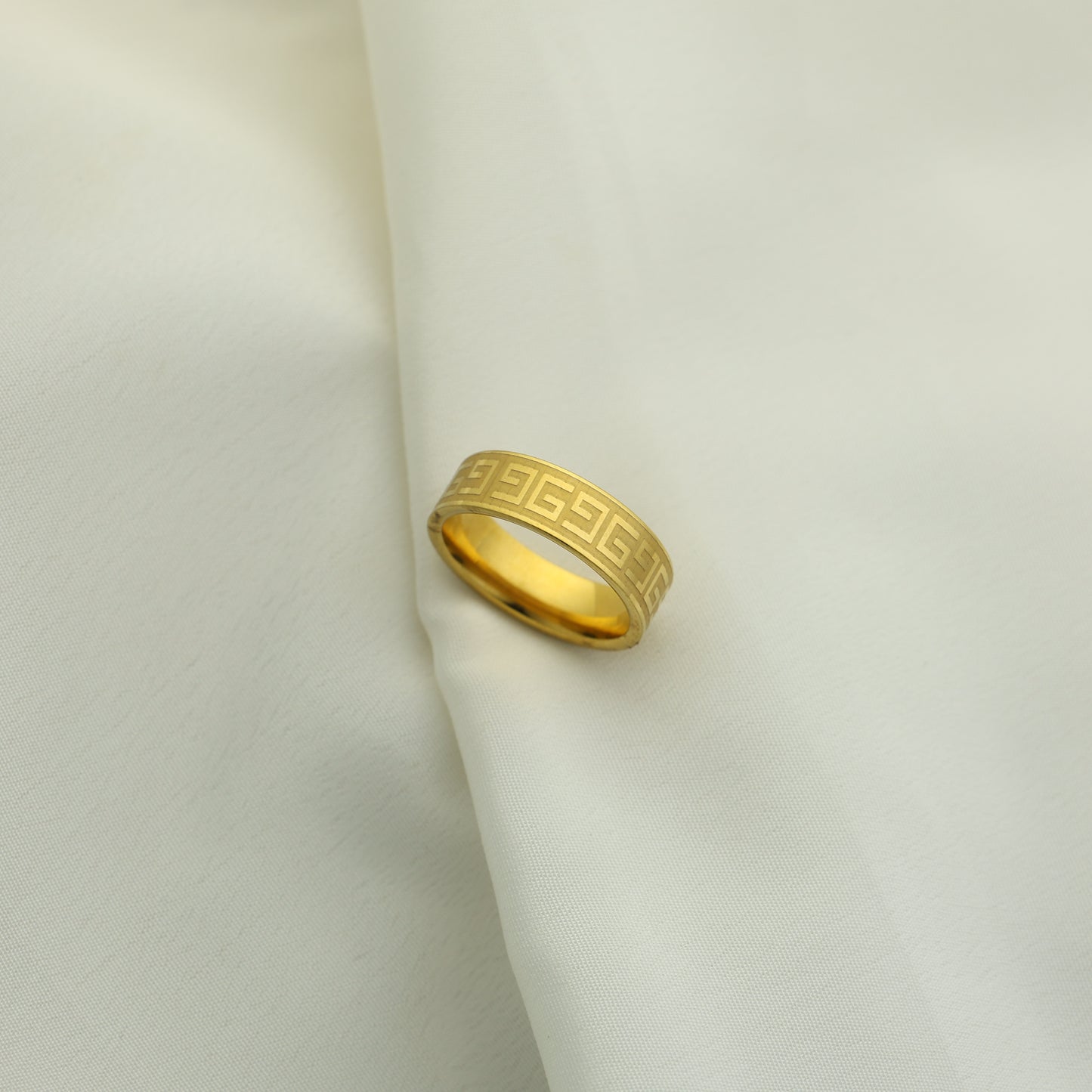 24Kt Gold Plated Designer Band Gents Ring – Classic Engraved Style