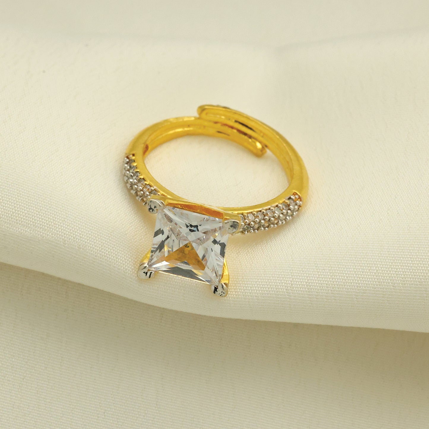 Add 24kt Gold Plated Diamond Look Engagement/Dailywear Adjustable Ladies Ring_750 to the cart