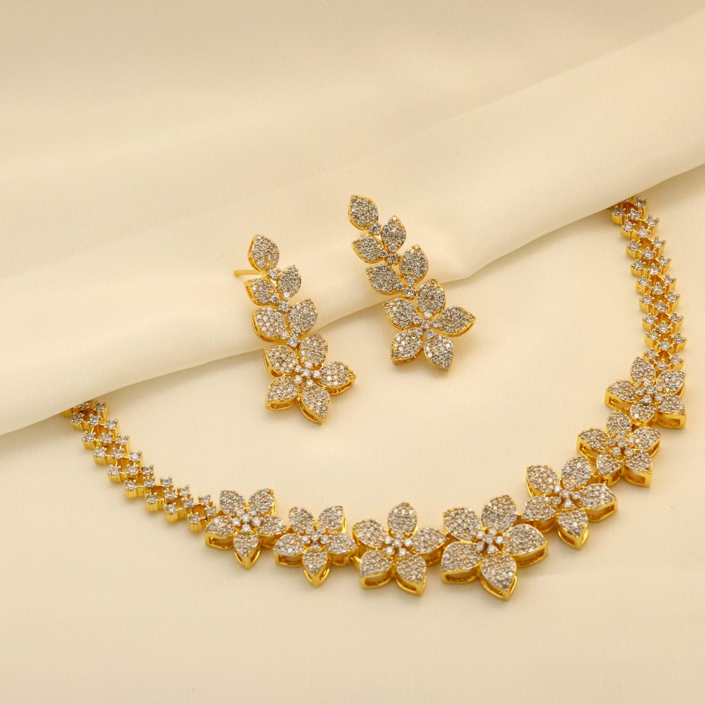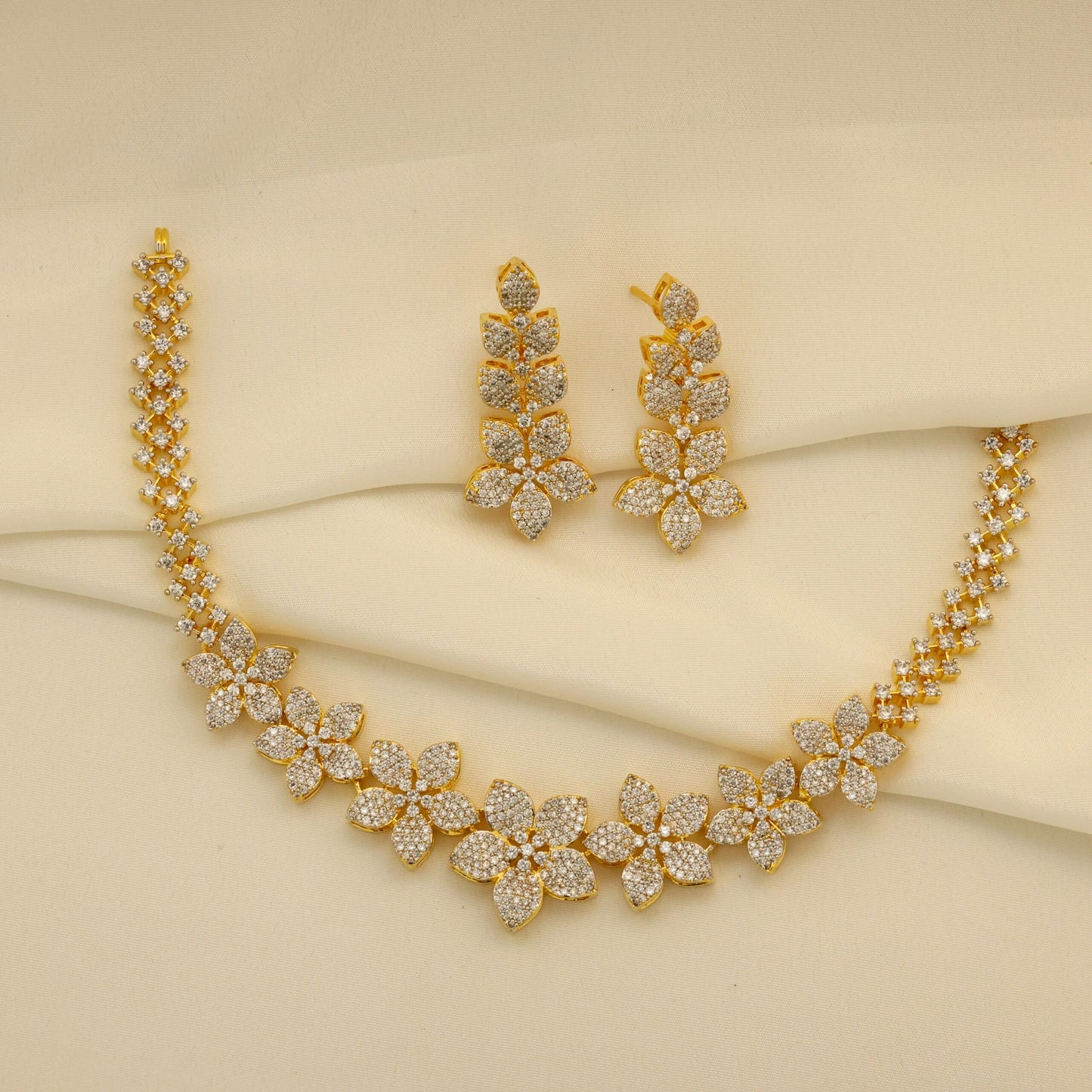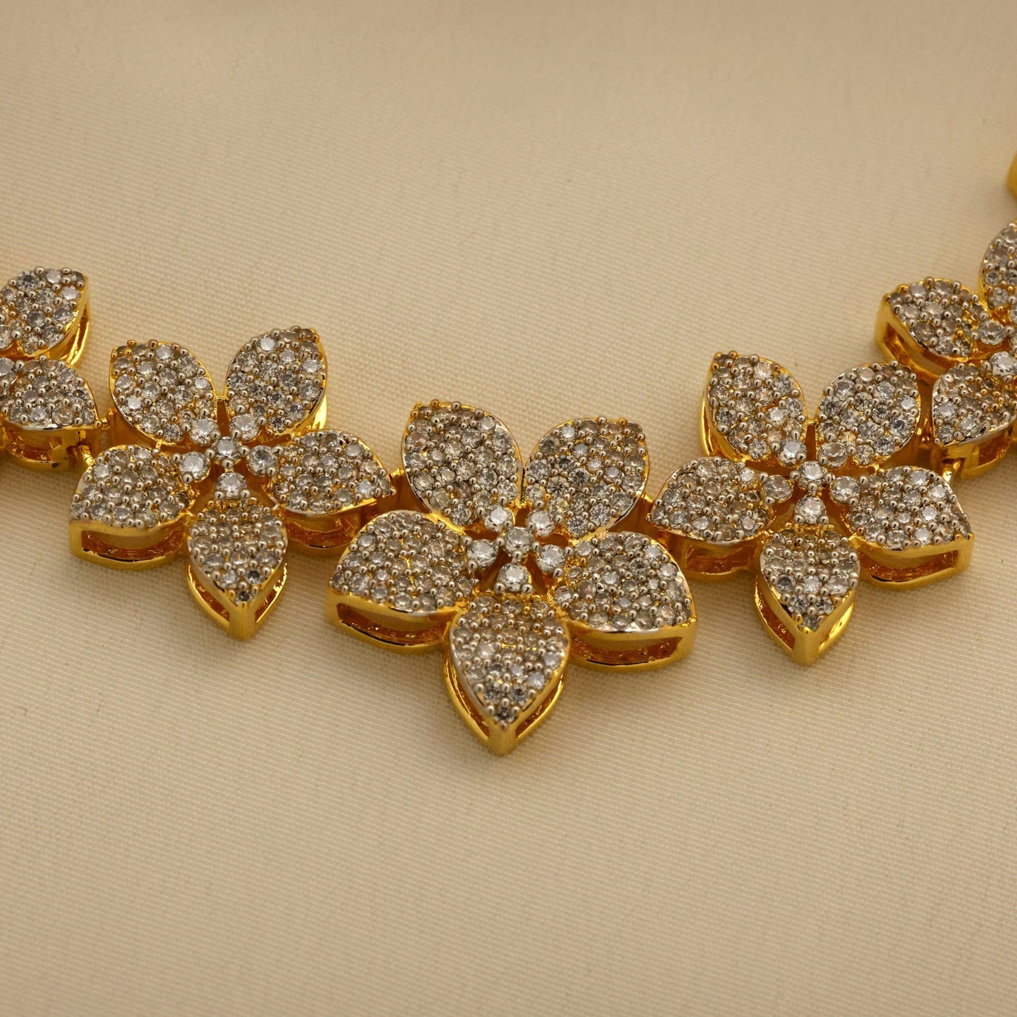 Flower shaped American diamond 24 karat gold plated Necklace_1900