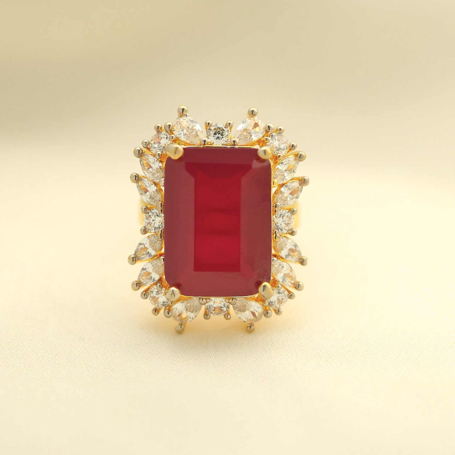 Add 24kt Gold Plated Rectangle Ruby Adjustable Ladies Ring_820N to the cart