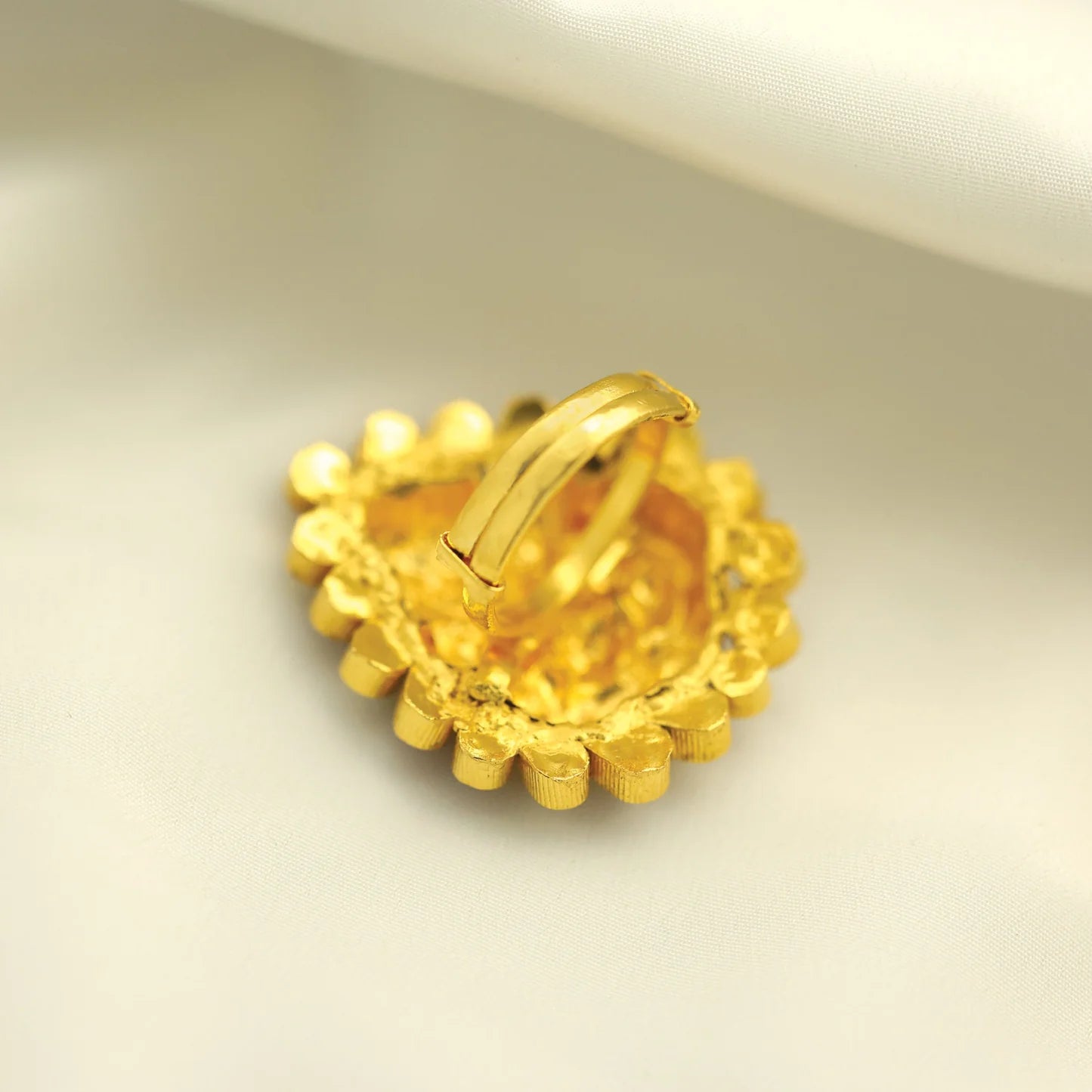 24kt Gold Plated Lord Ganesha Design With Kundan Adjustable Ladies Ring
