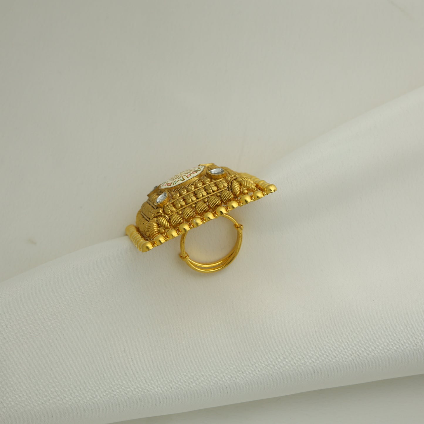24Kt Gold Plated Antique Square Traditional Designer Ladies Ring