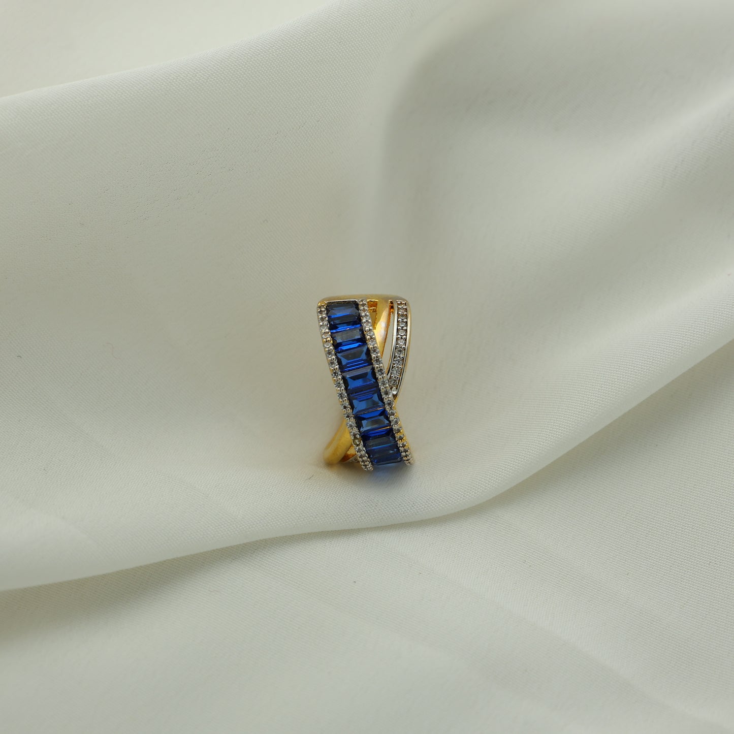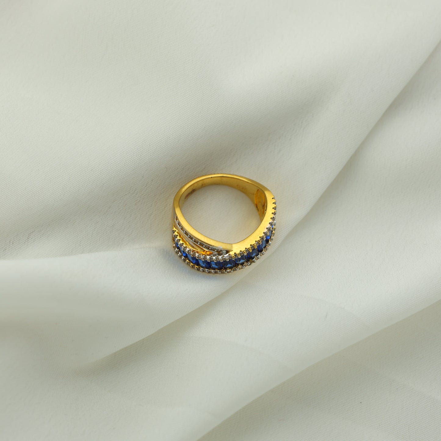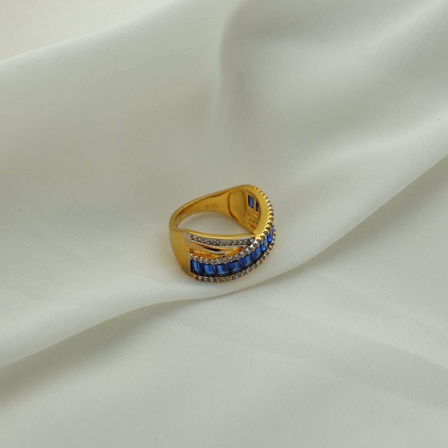 24Kt Gold Plated Blue Stone American Diamond Designer Ladies Ring