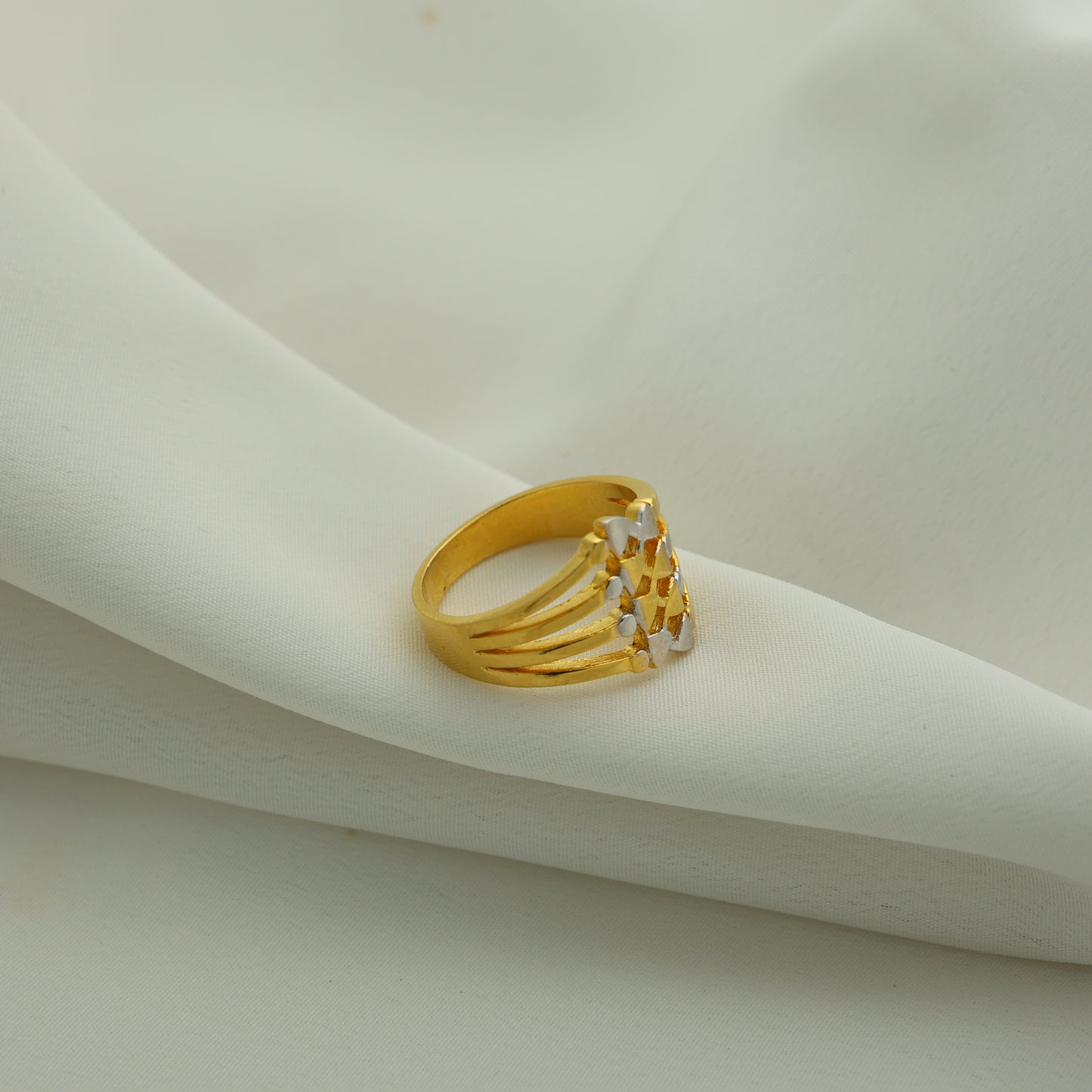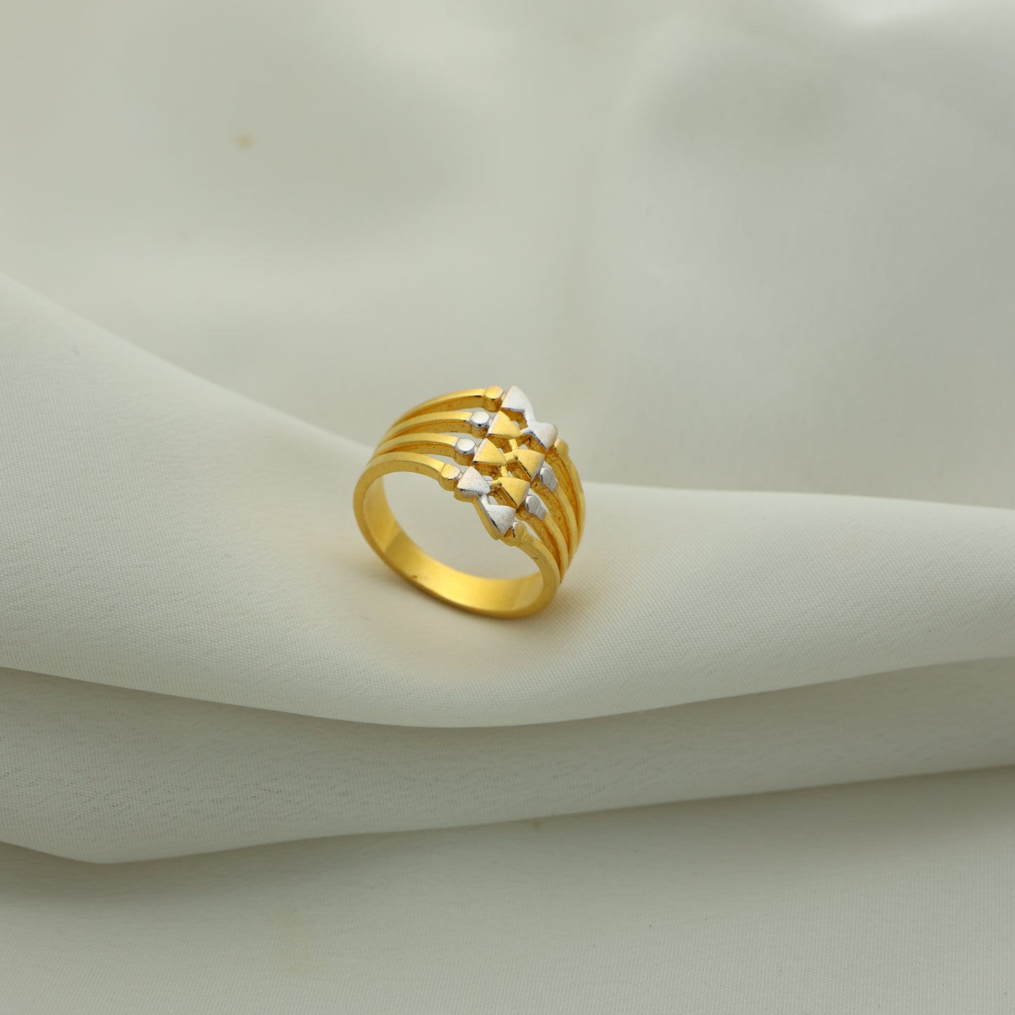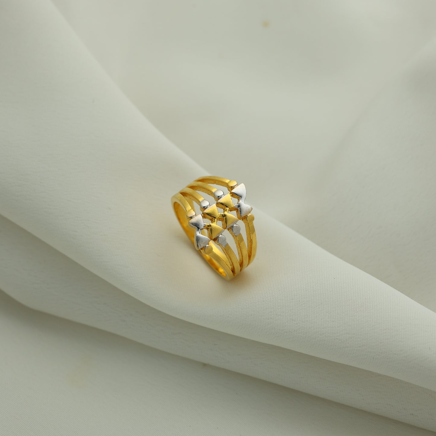 24Kt Gold Plated Casting Ladies Ring – Stylish Dual Heart Designer Pattern