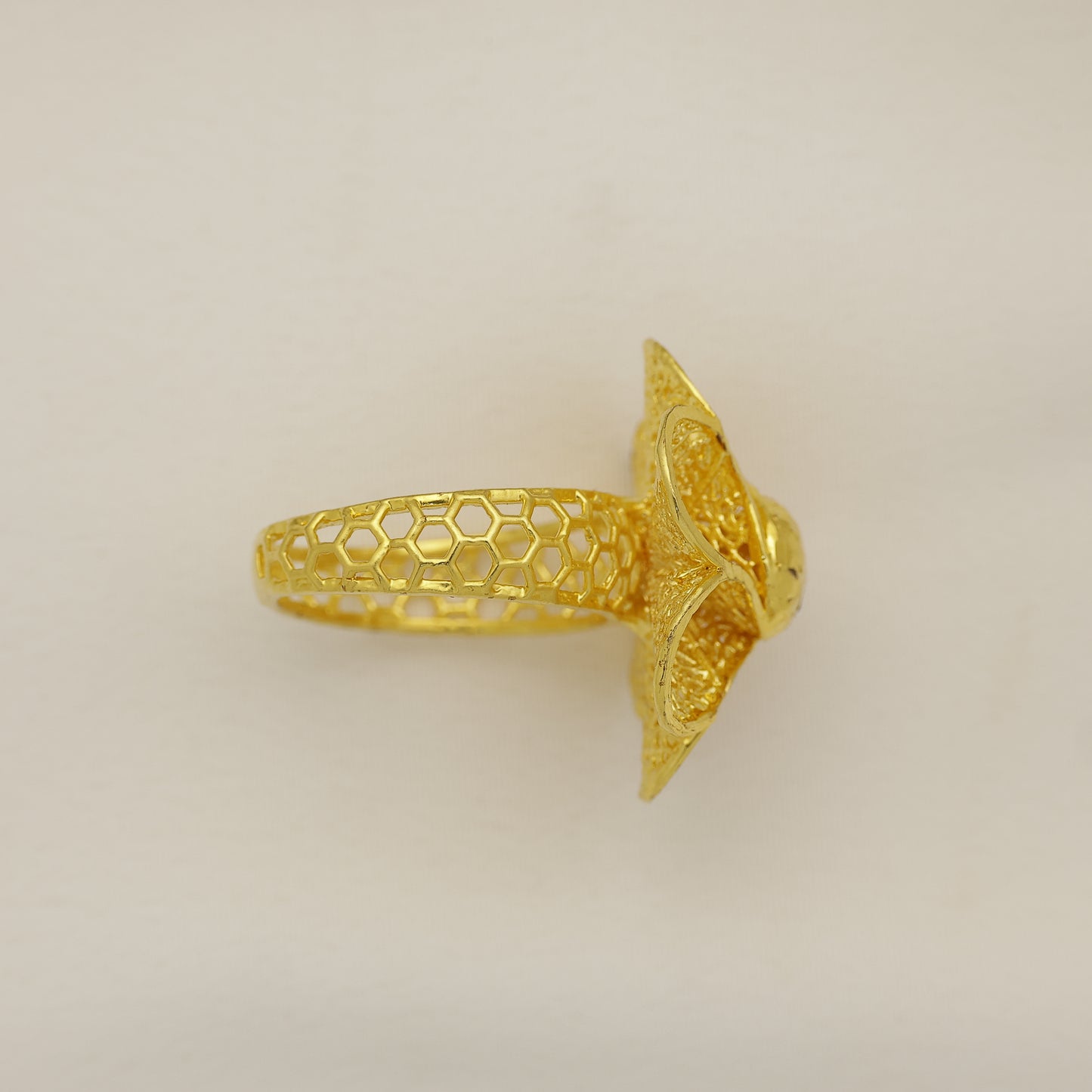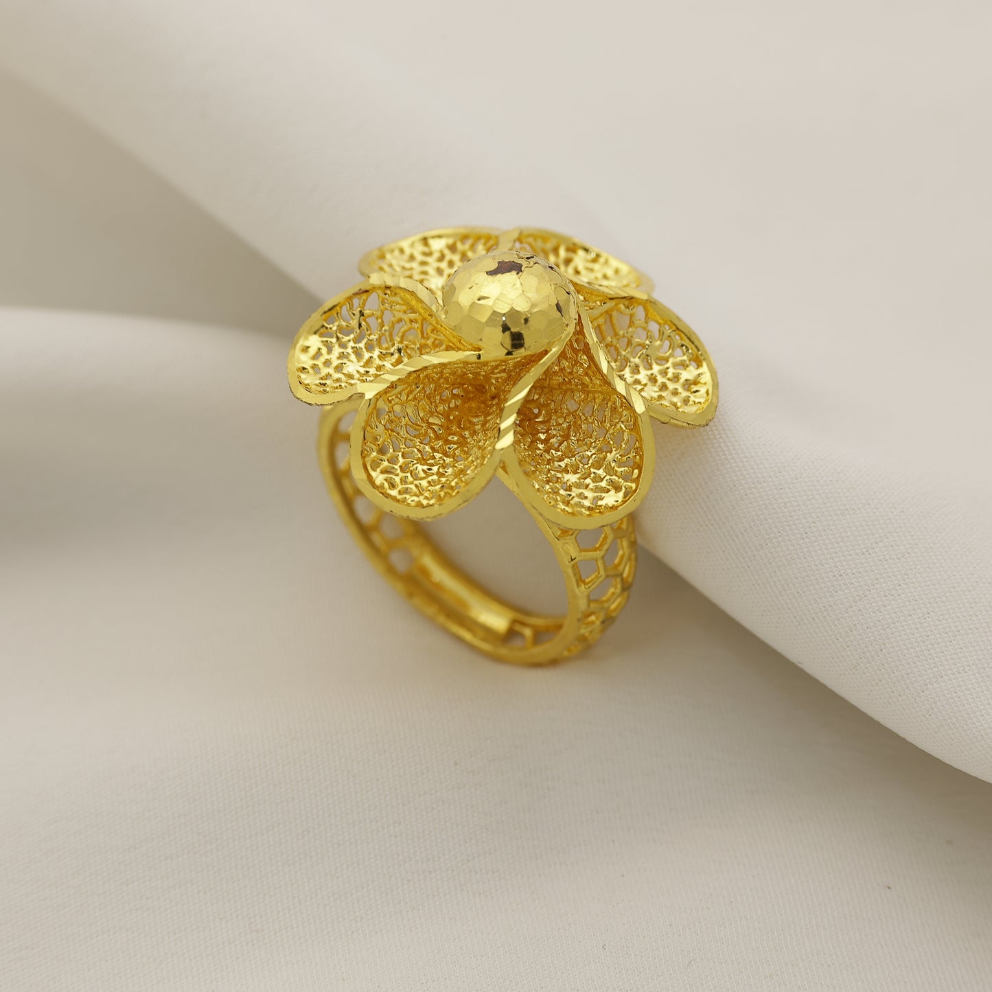 24Kt Gold Plated Floral Cutwork Designer Statement Ring for Women