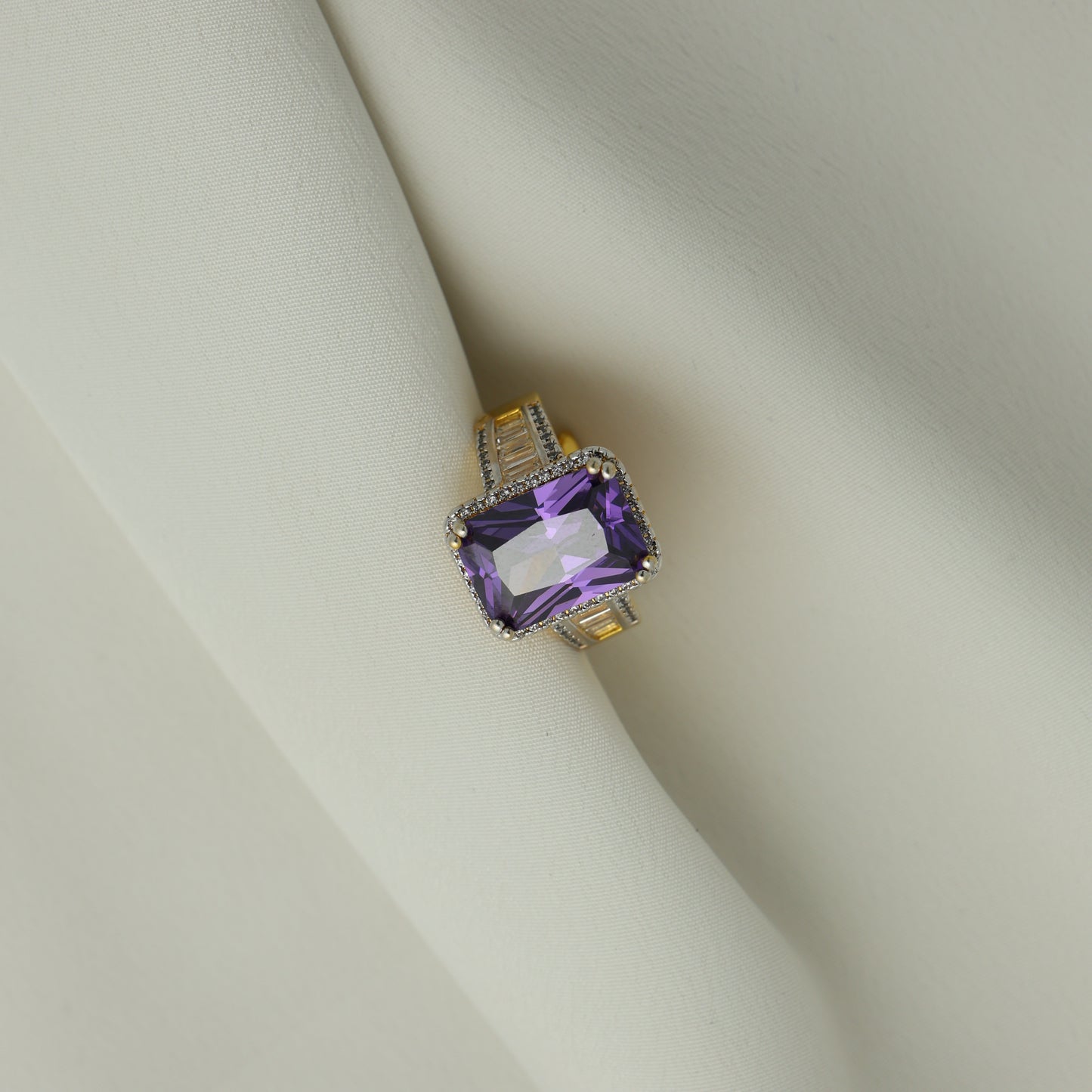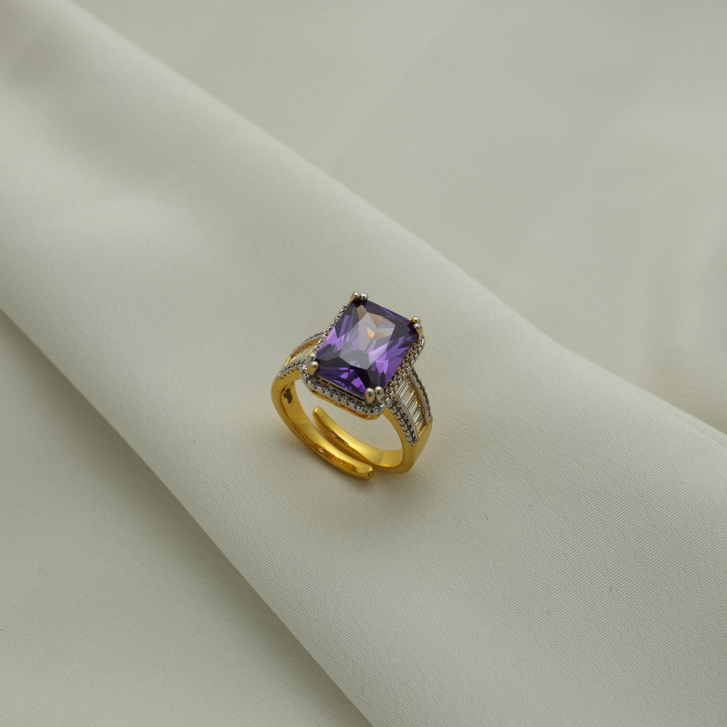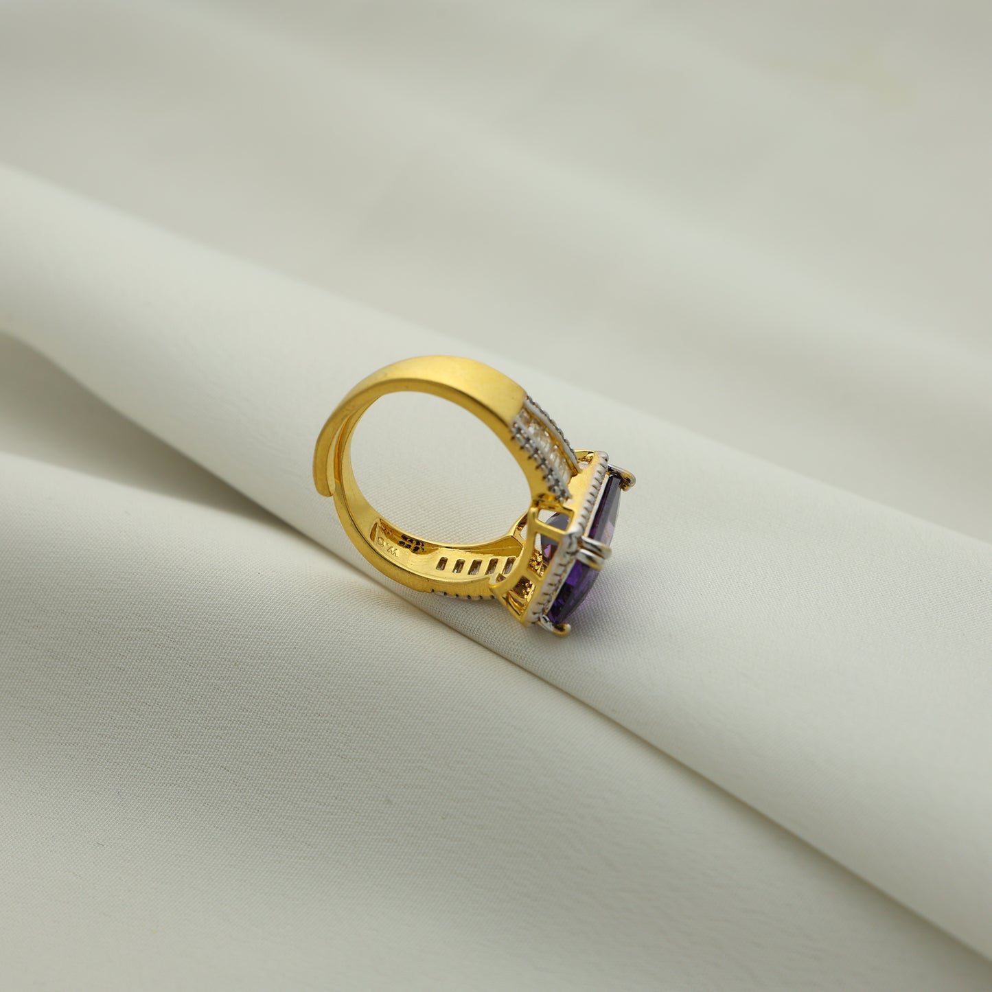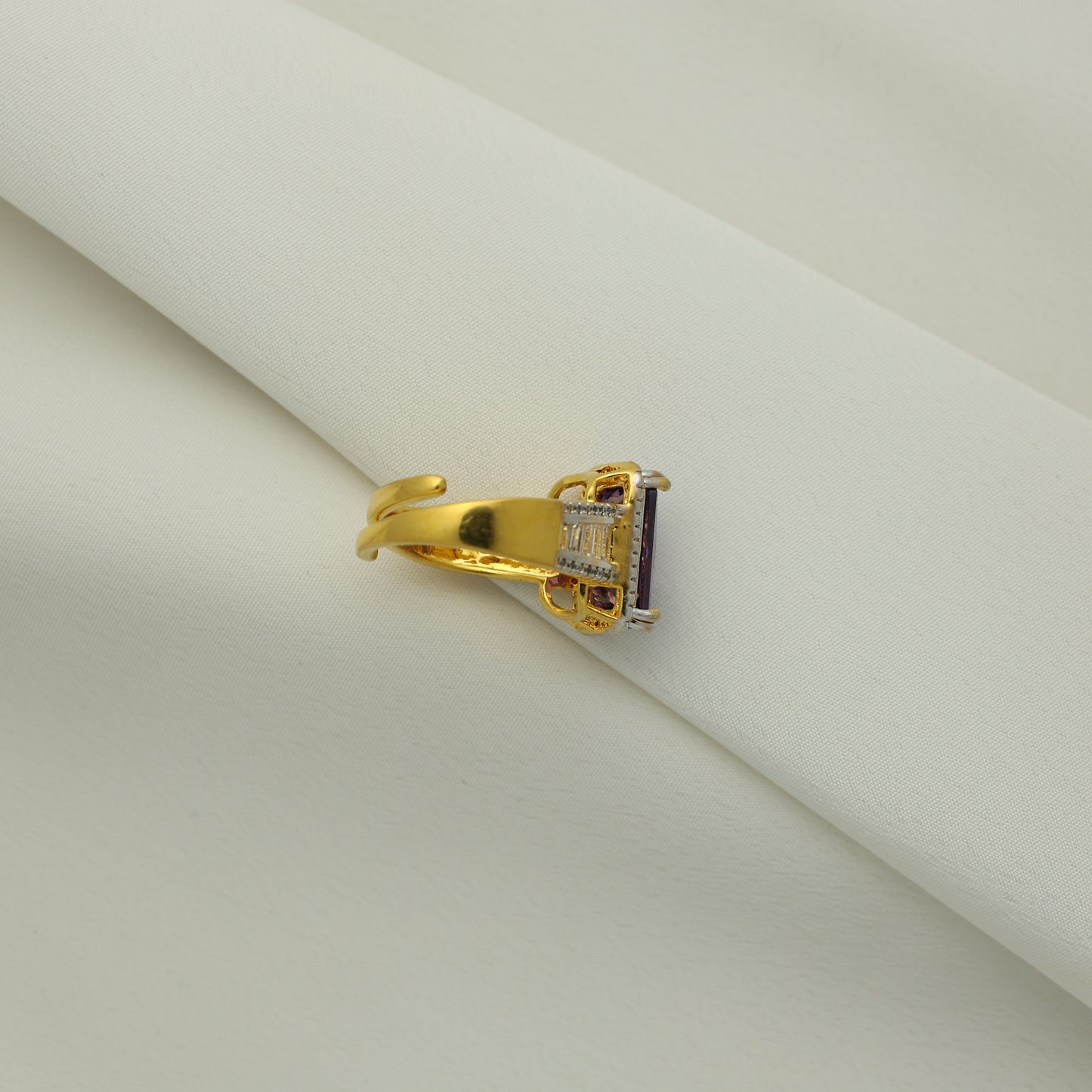 24Kt Gold Plated Purple Stone American Diamond Designer Ladies Ring