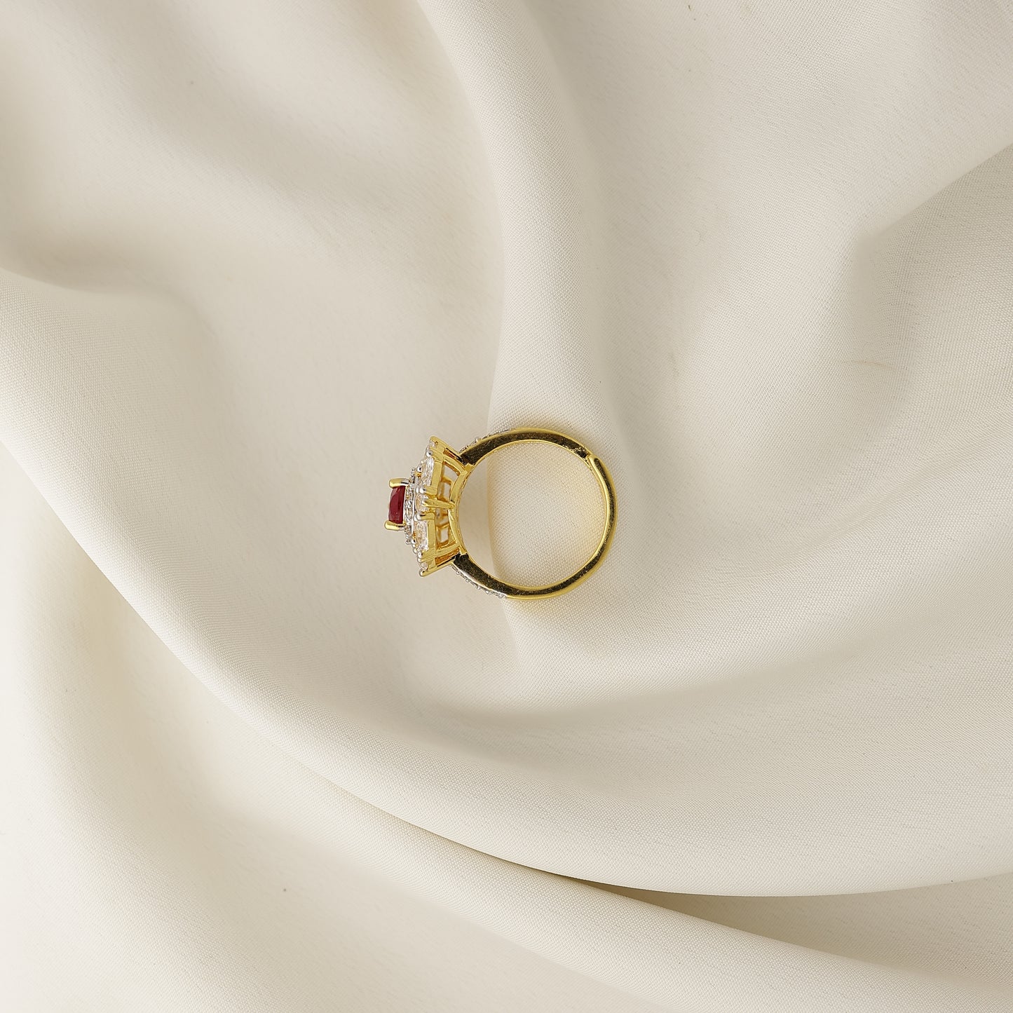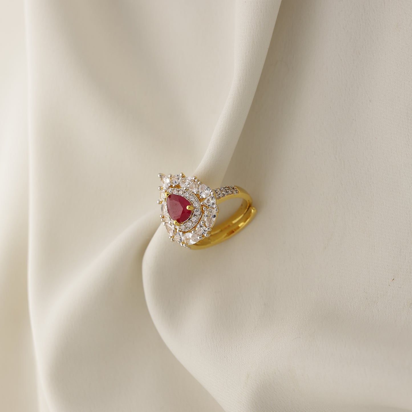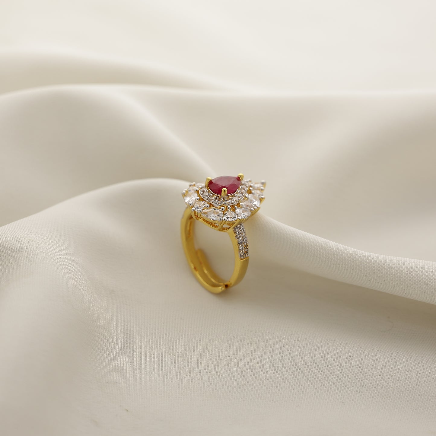 24Kt Gold Plated Red Stone American Diamond Designer Cocktail Ring for Women
