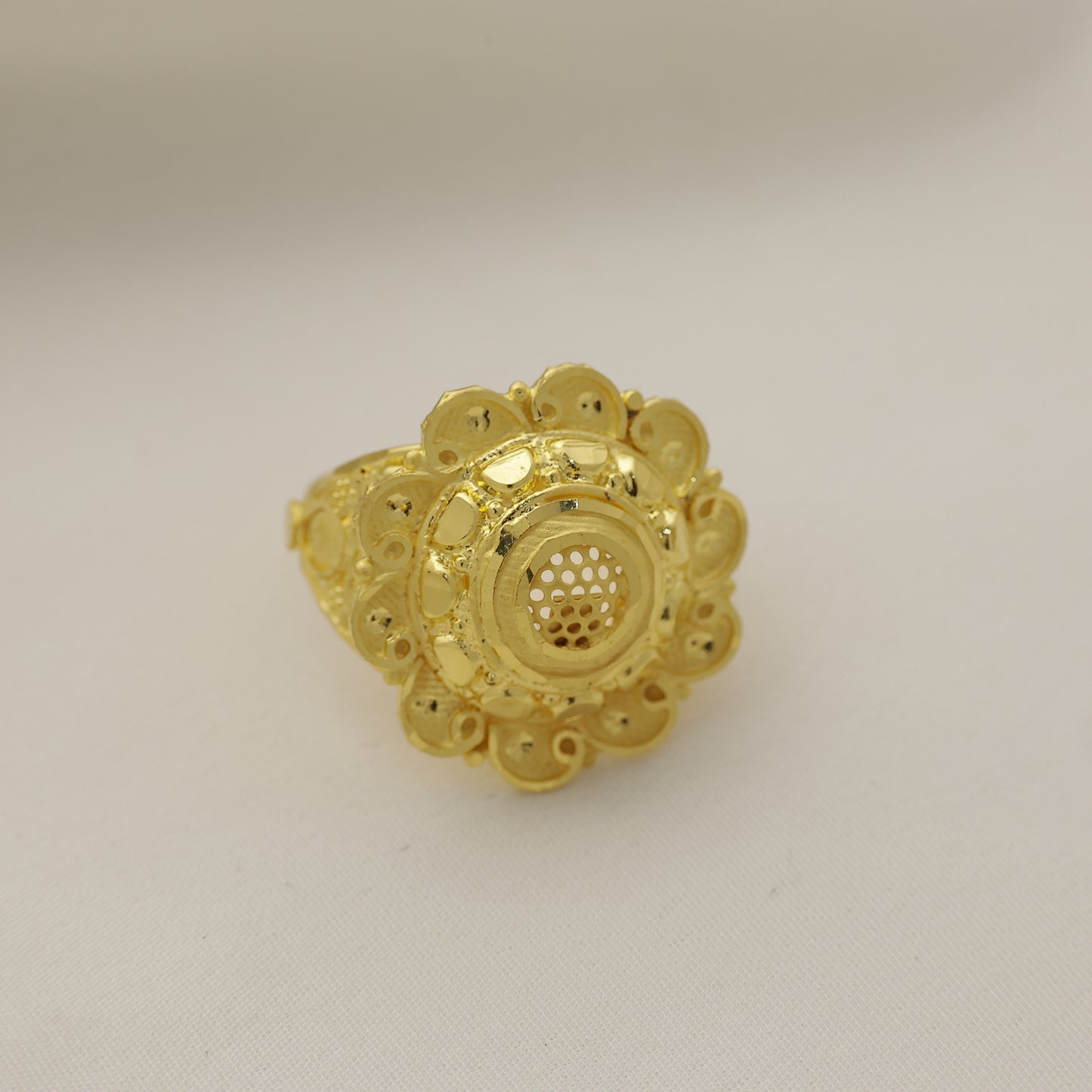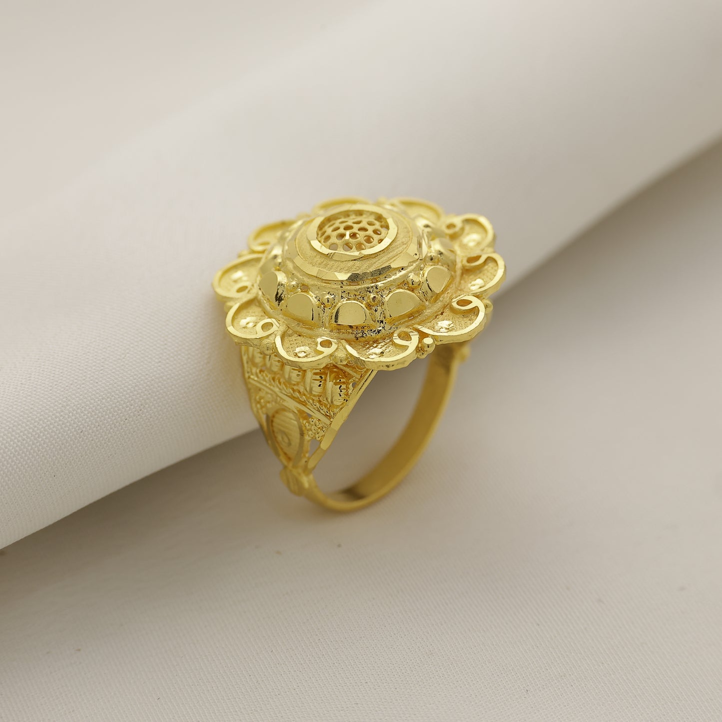 24Kt Gold Plated Traditional Floral Dome Designer Ring for Women
