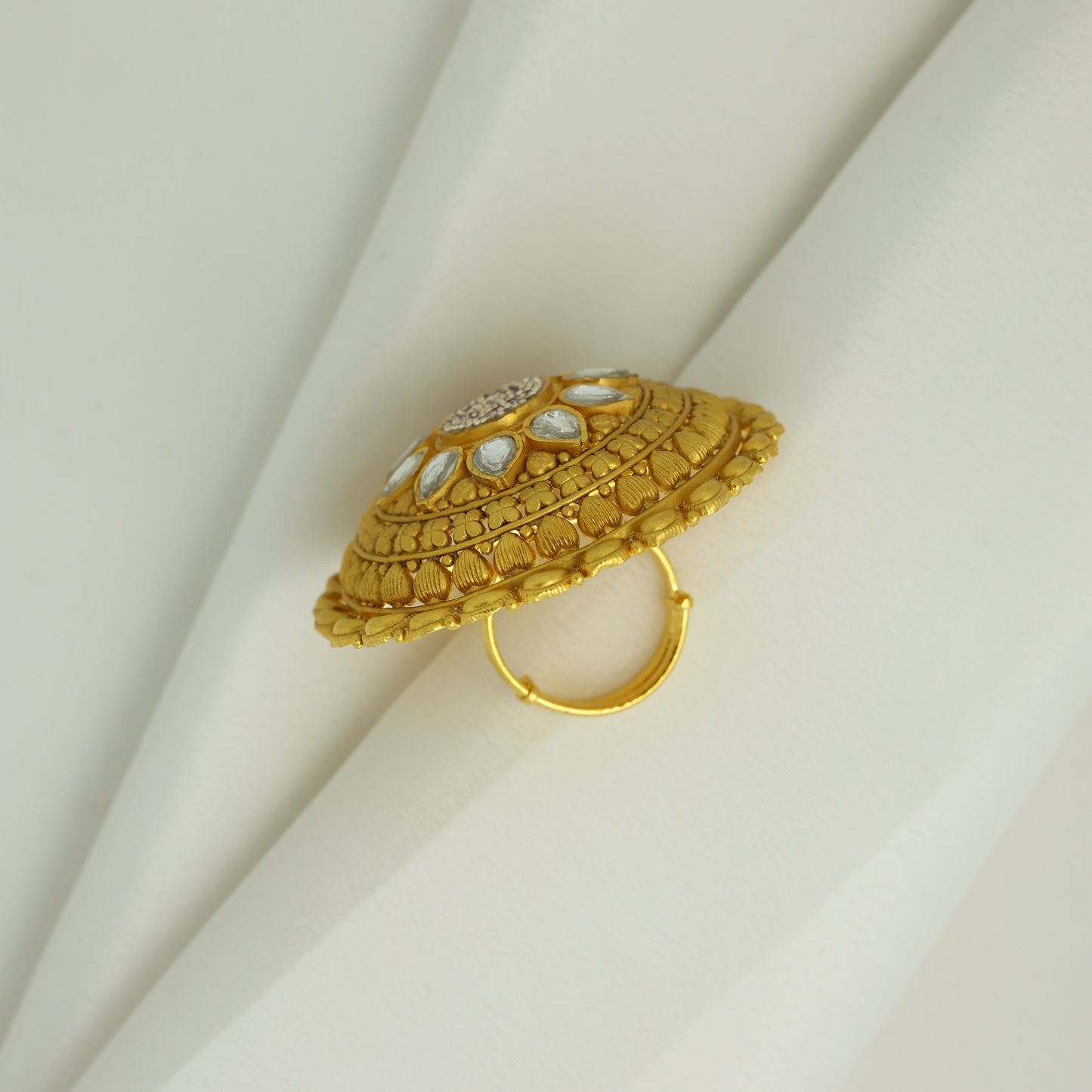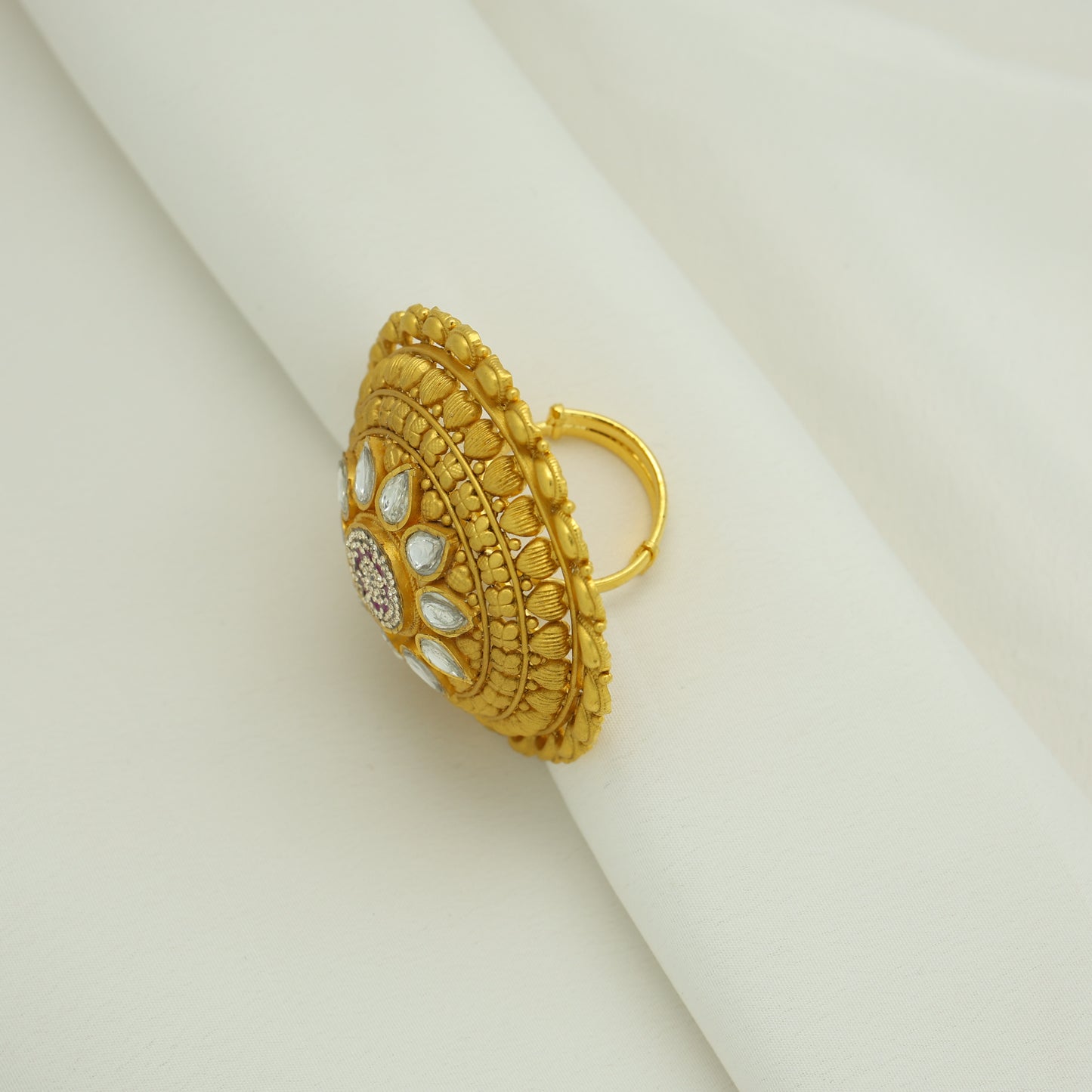 24Kt Gold Plated Traditional Round Kundan Designer Ladies Ring