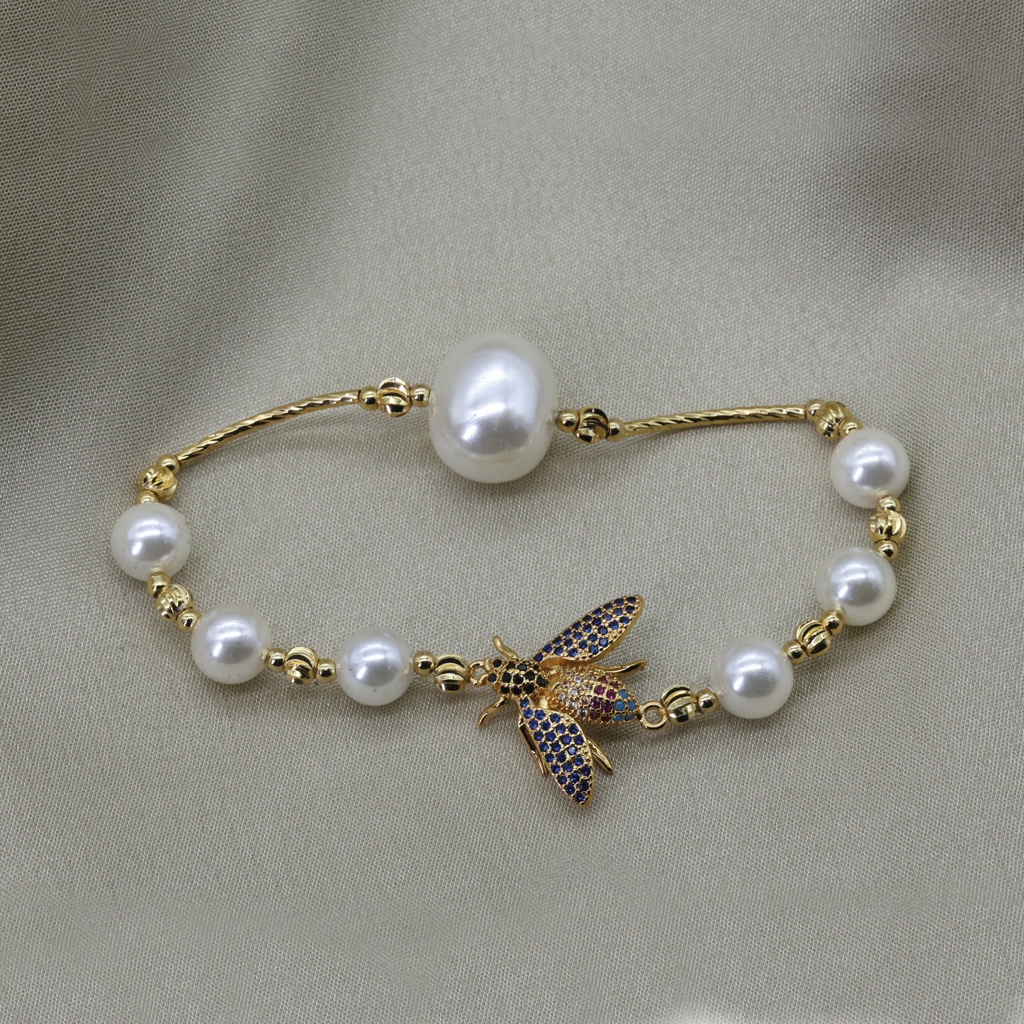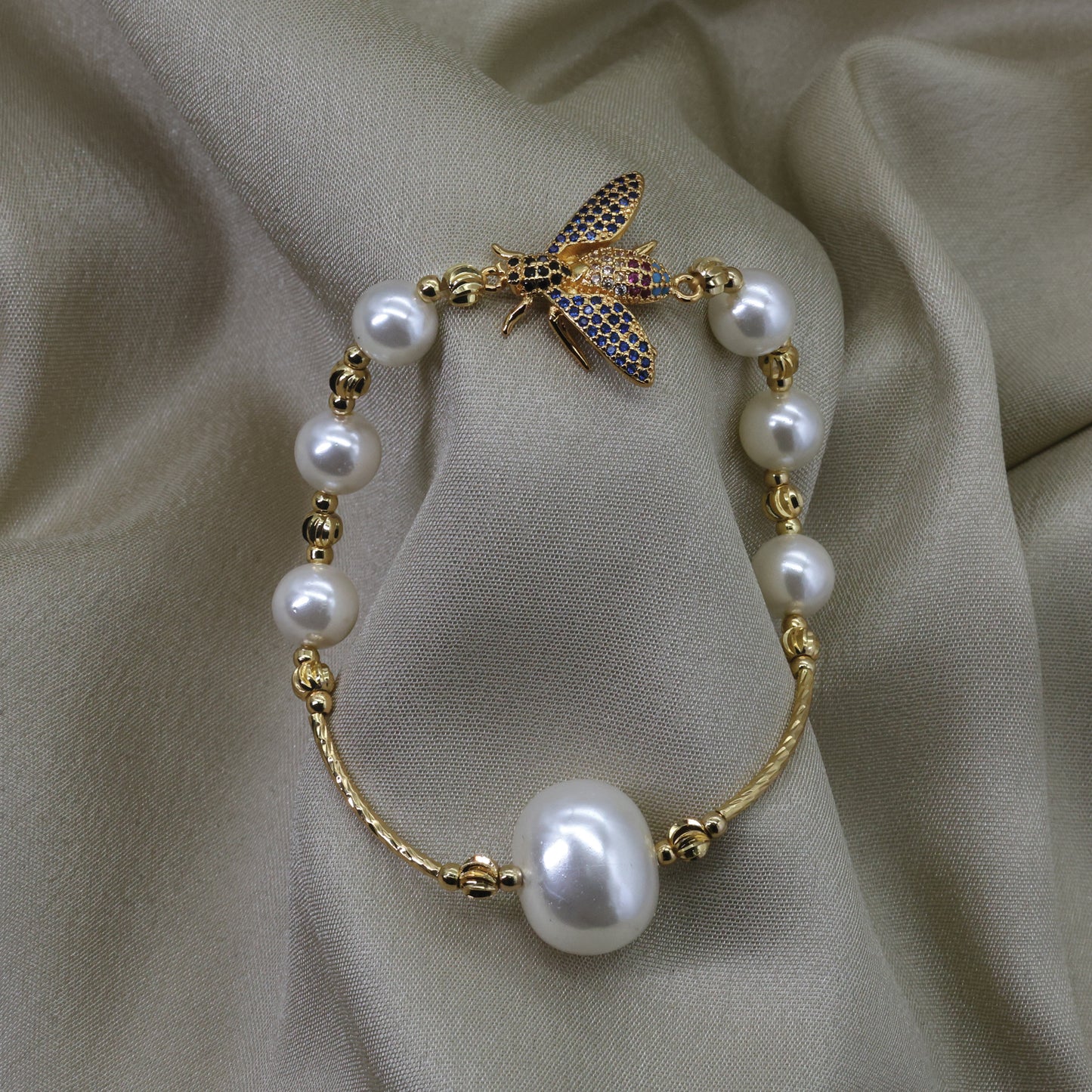 Add Elegant Bee Beaded With White Pearl Bracelet to the cart