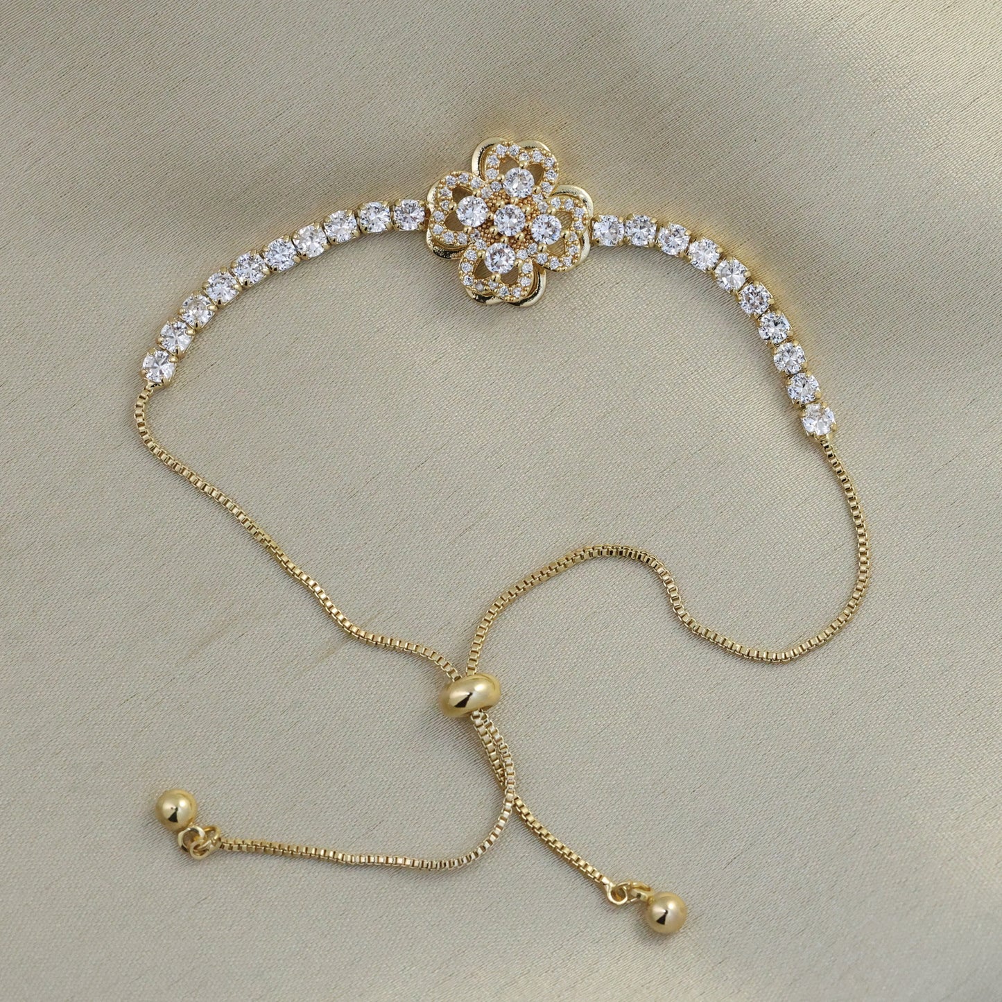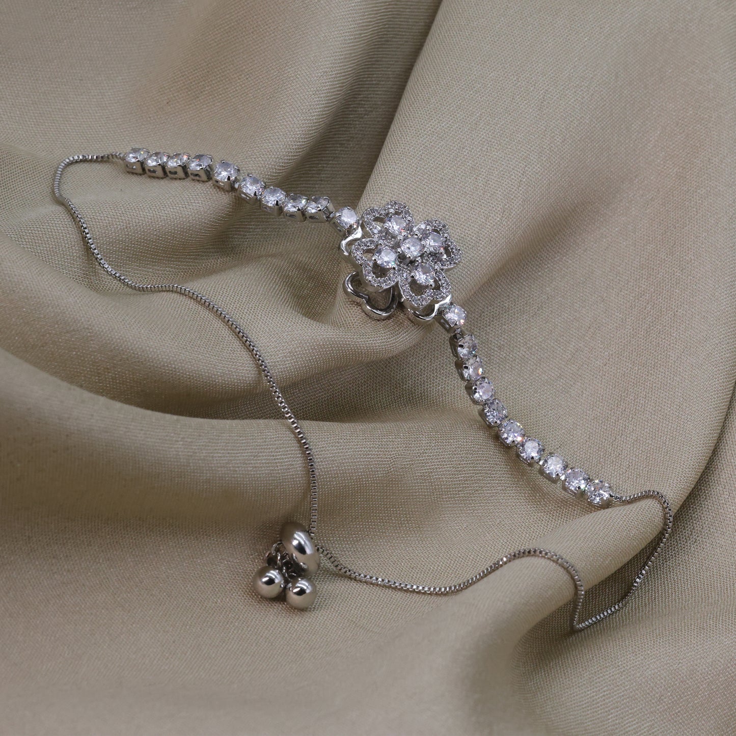 Beautiful Flower Design Spiny With White Crystal Bracelet