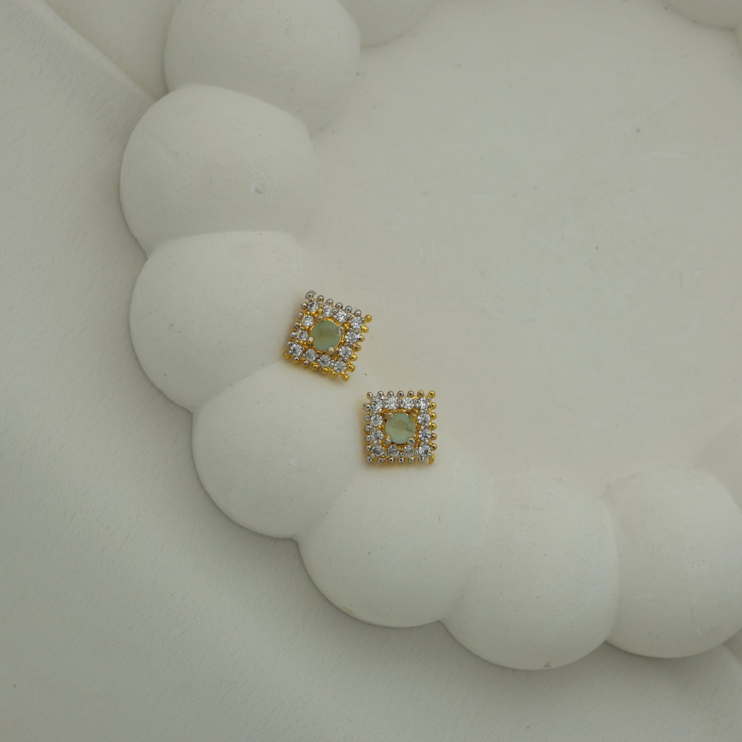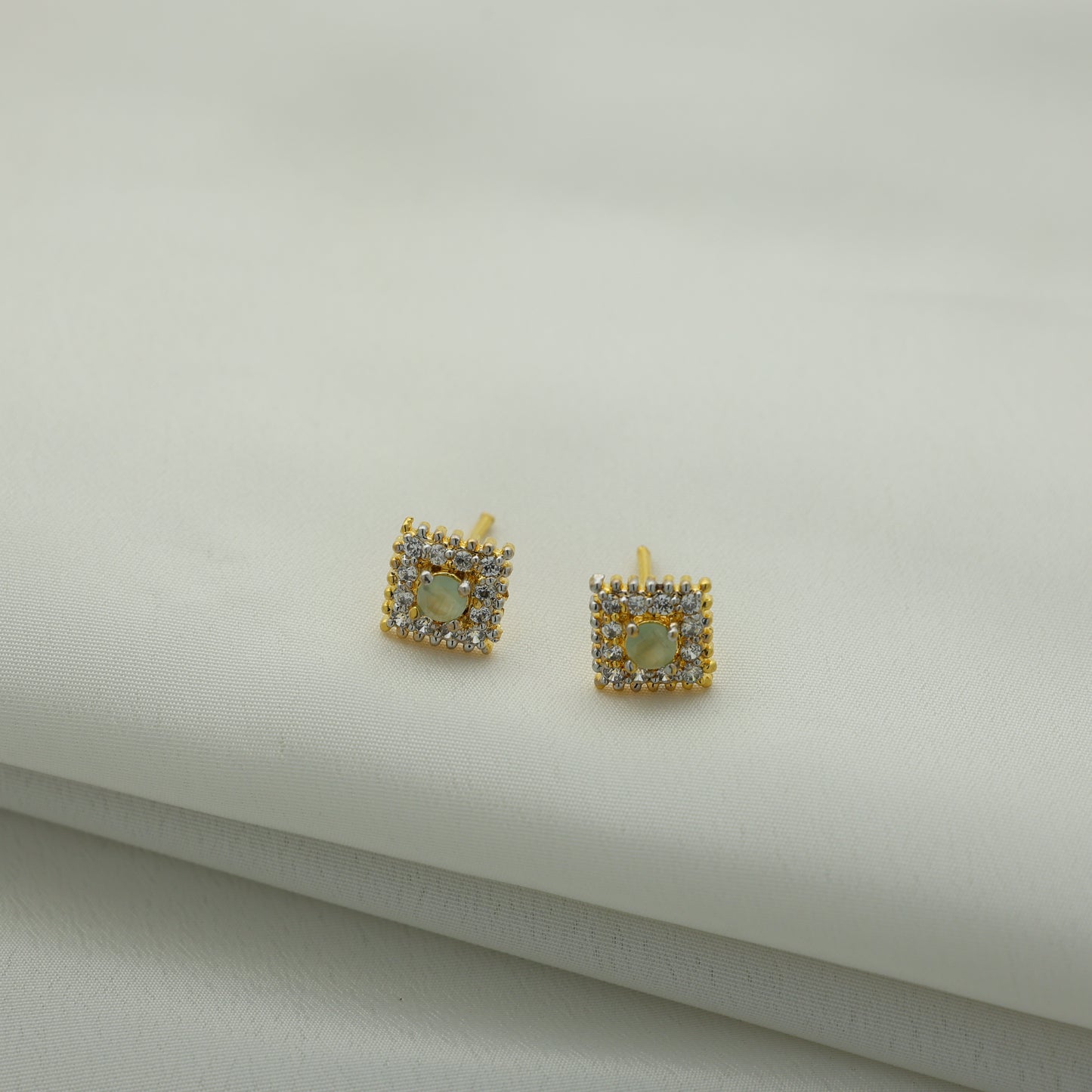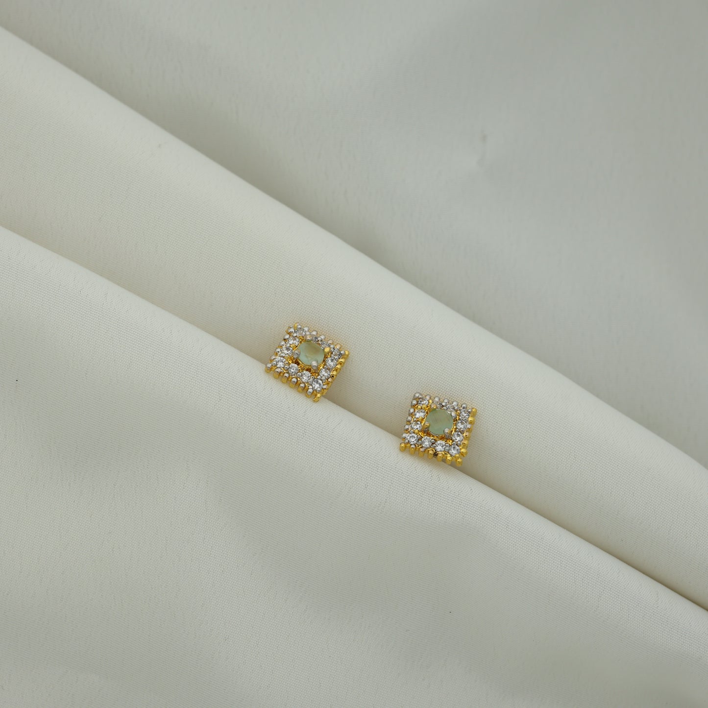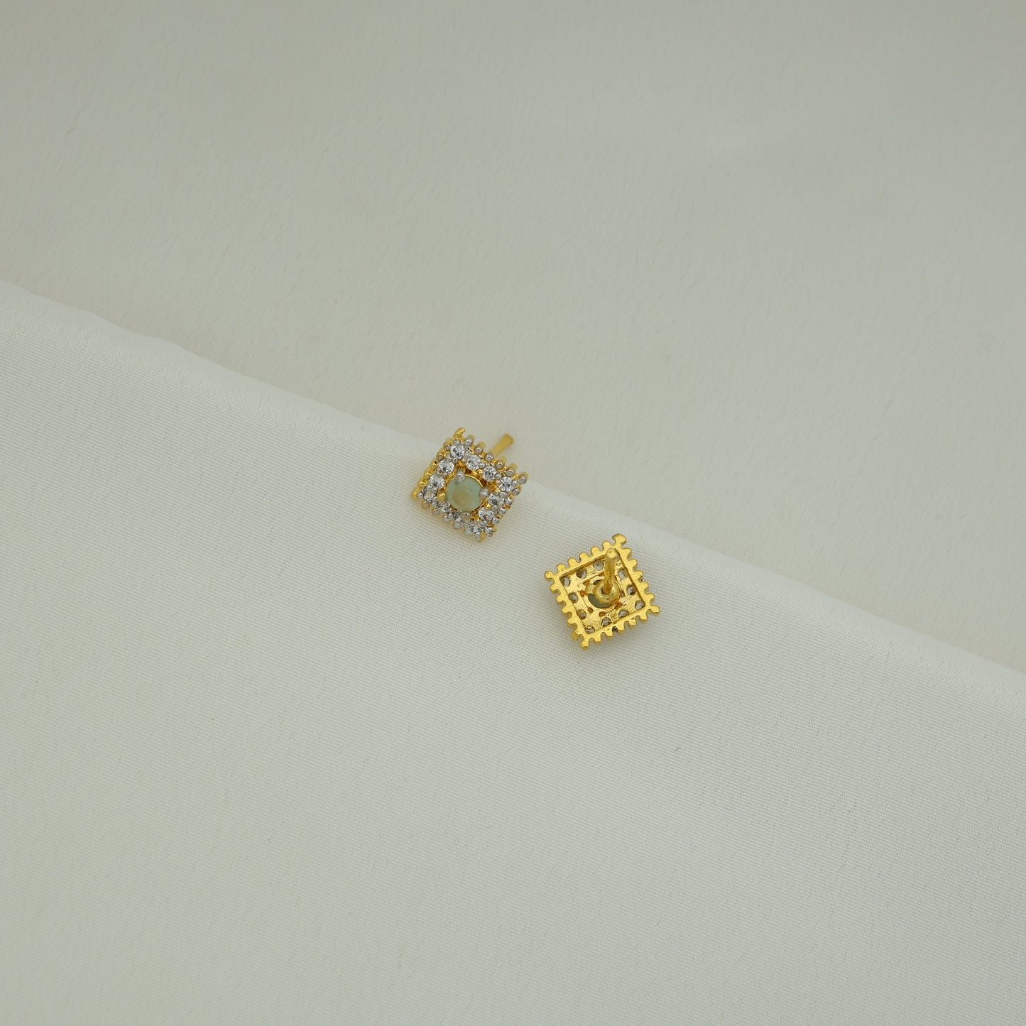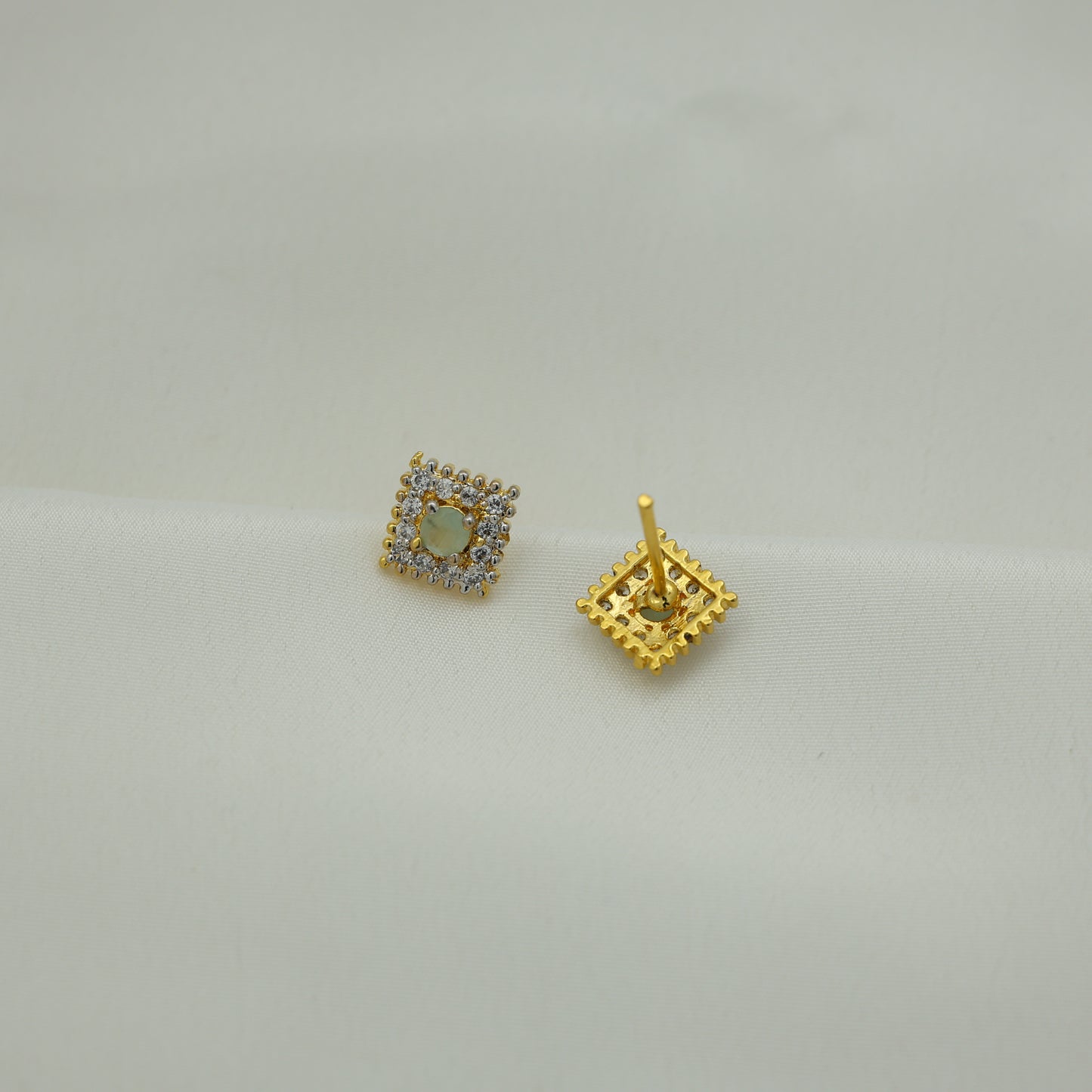 24Kt Gold Plated AD Square Halo Designer Stud Earrings