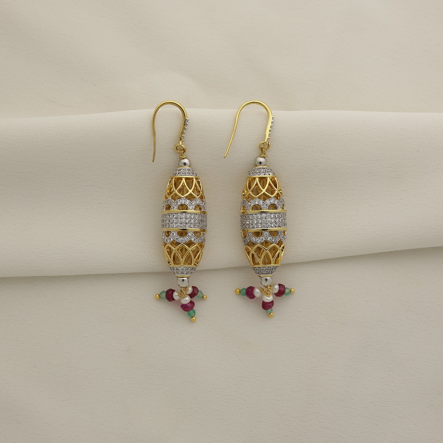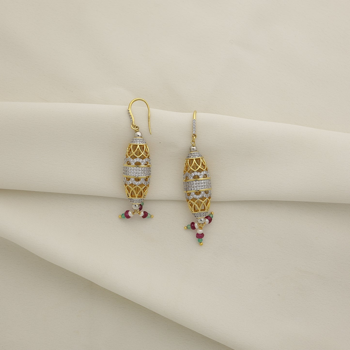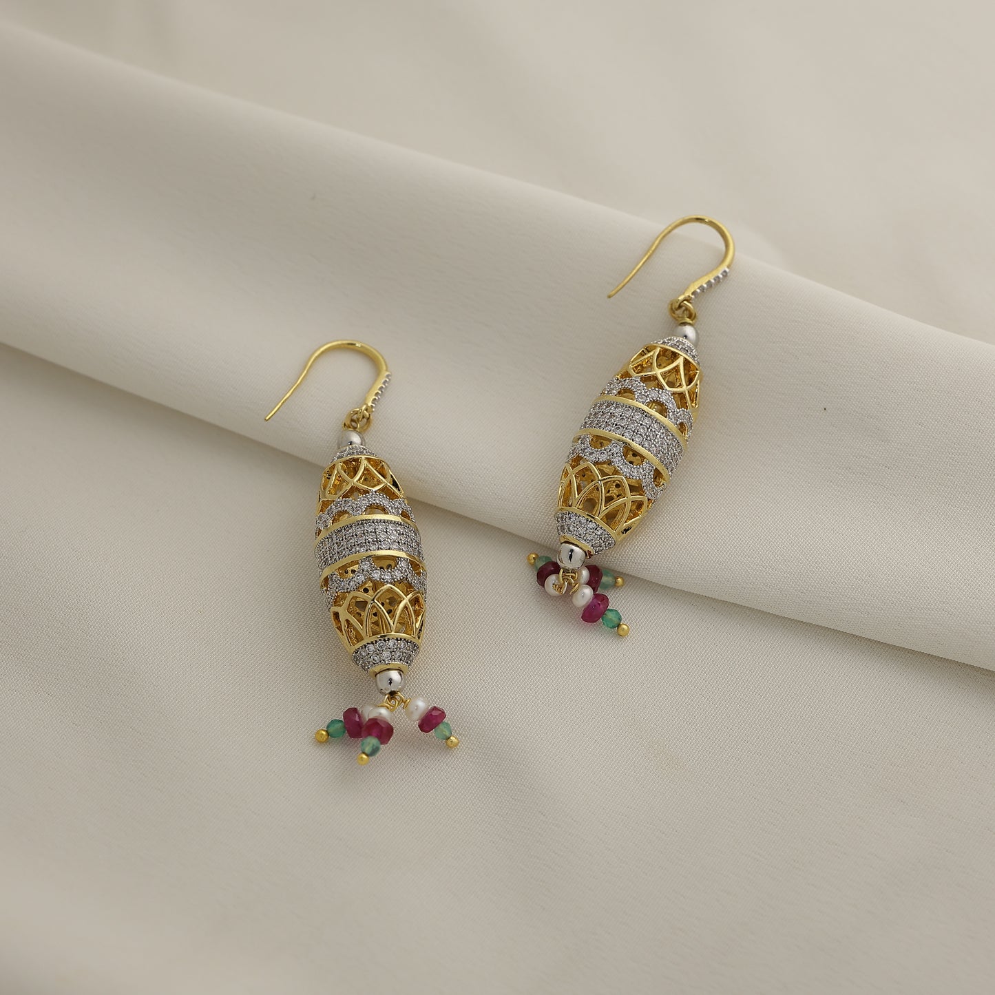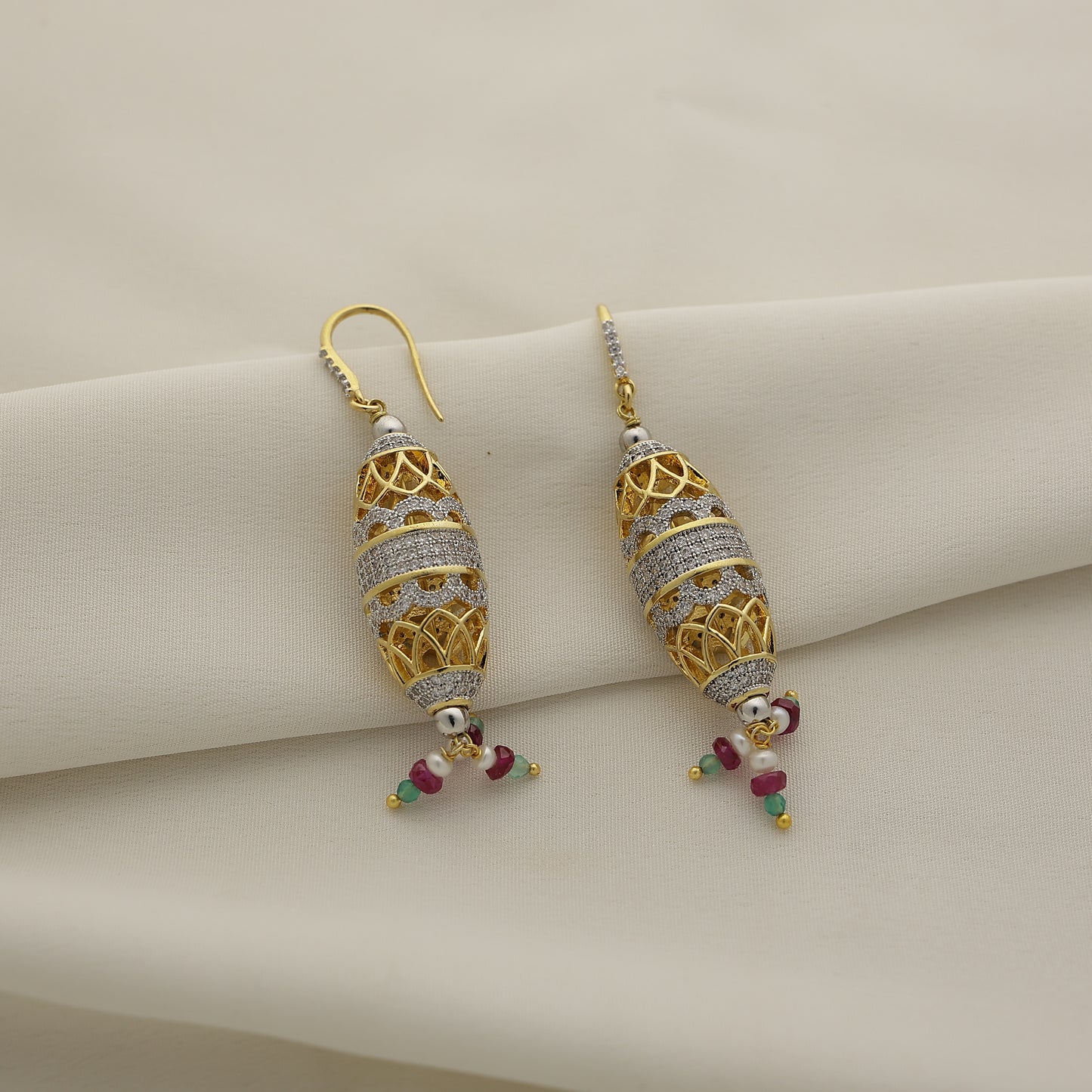 24Kt Gold Plated American Diamond Multicolor Beads Designer Drop Earrings for Women