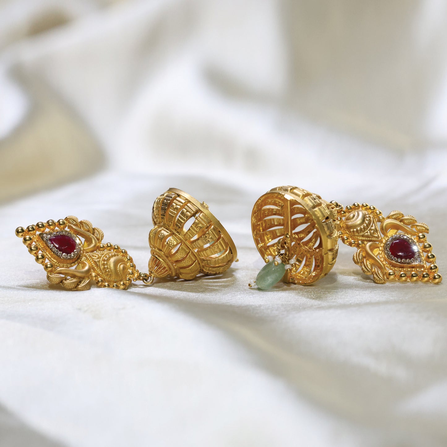 24kt Gold PLated Antique Long Set With Beautiful Kundan