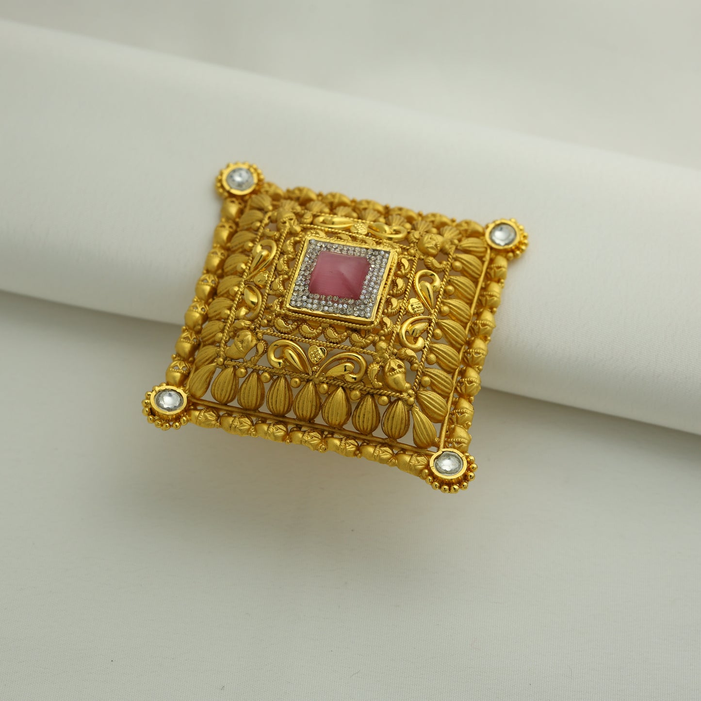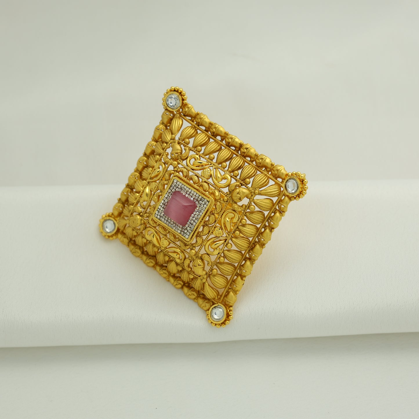 24Kt Gold Plated Antique Square Pink Stone Designer Ladies Ring