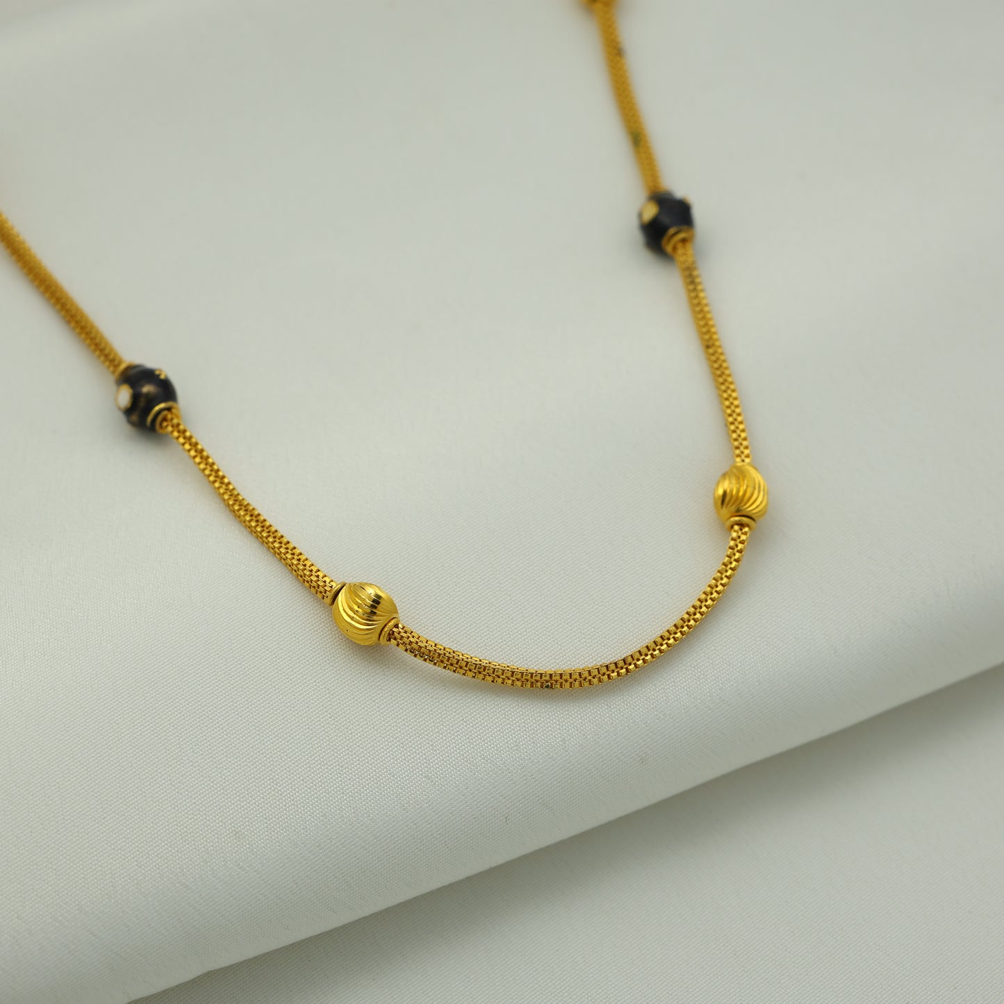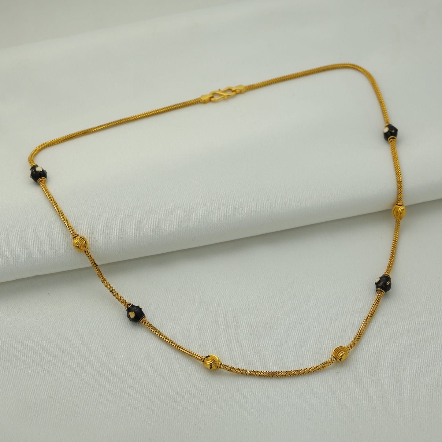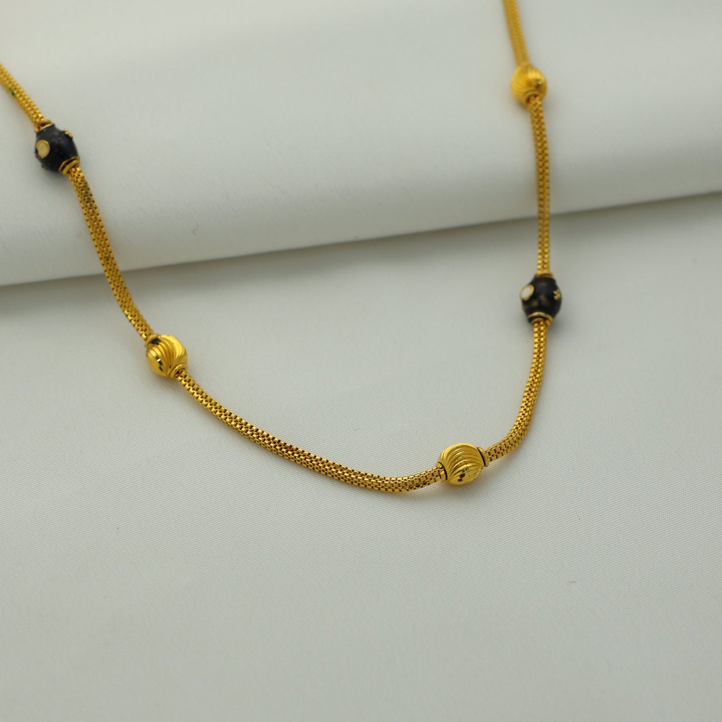 24Kt Gold Plated Black Bead Ladies Chain Necklace