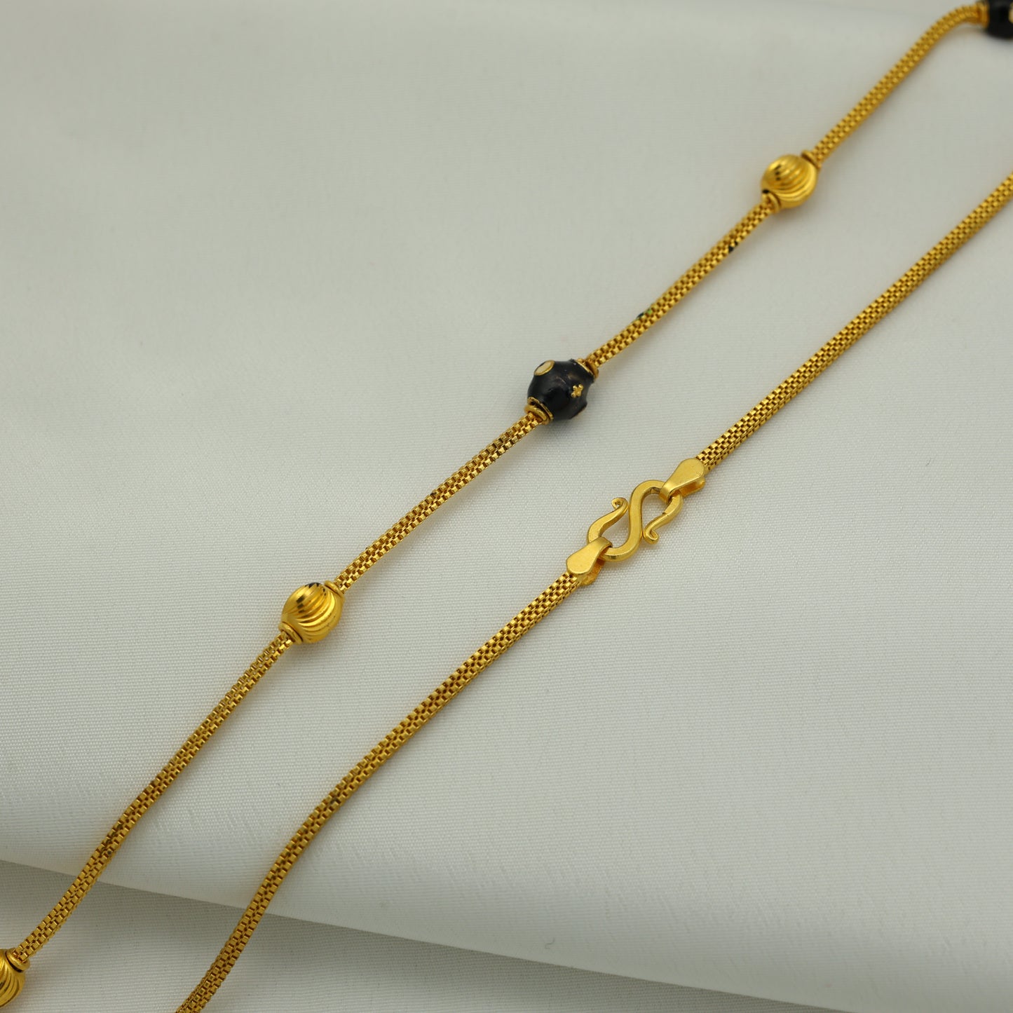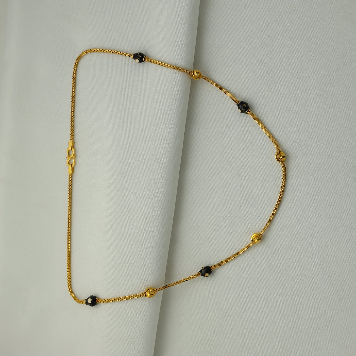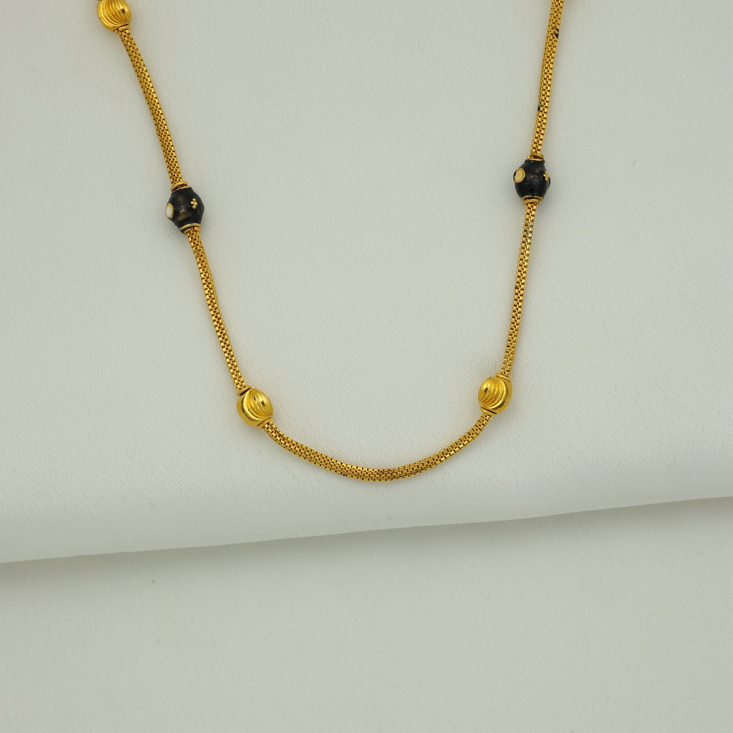 24Kt Gold Plated Black Bead Ladies Chain Necklace