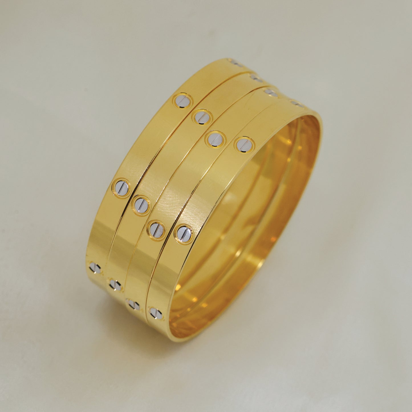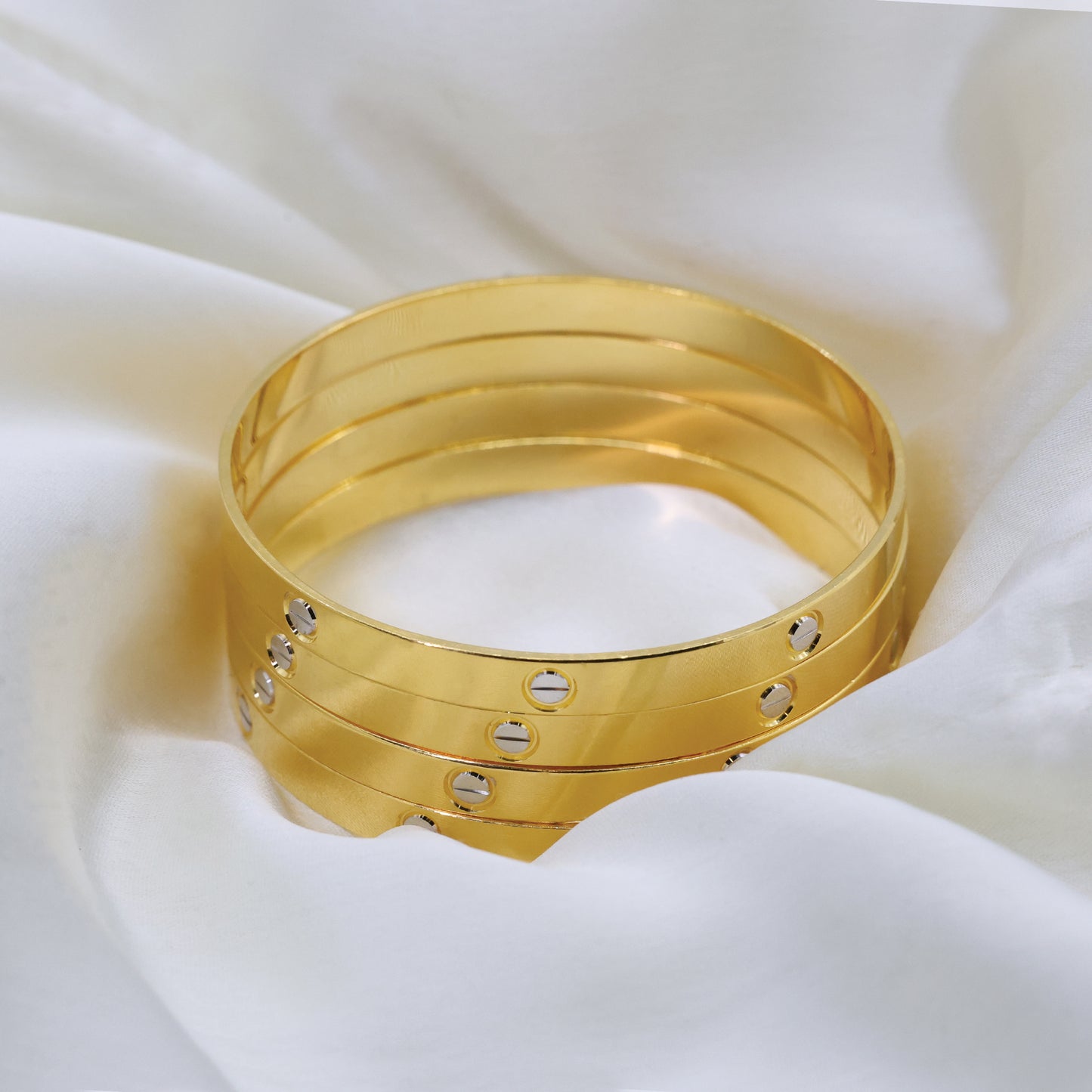 24kt Gold Plated Cartier Design Unique Design With Rhodium Polish Bangles Set of 4pcs