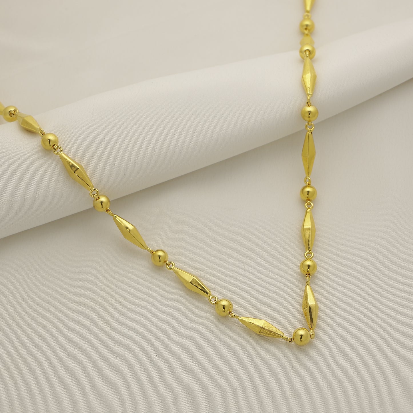 24Kt Gold Plated Designer Bead Pattern Ladies Chain Necklace for Women