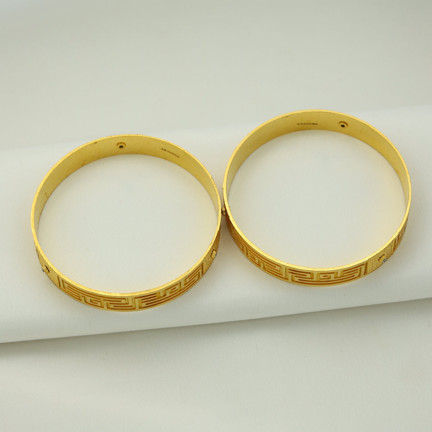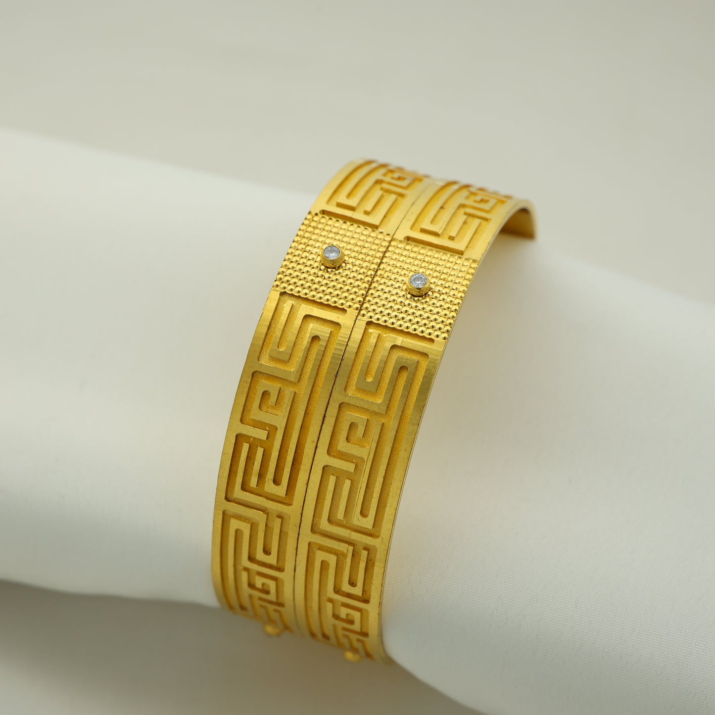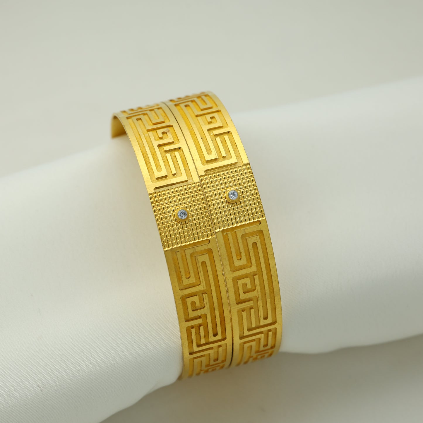 24Kt Gold Plated Designer CNC Greek Pattern Bangles Set (2 Pcs)