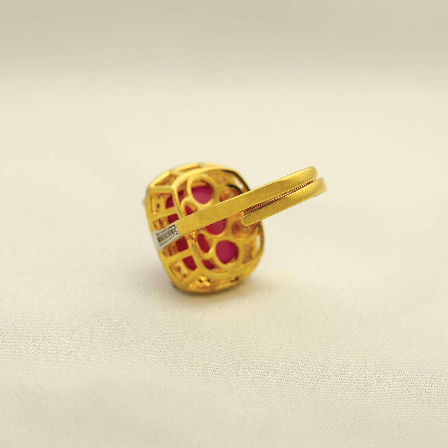 24kt Gold Plated Diamond Look Ruby Adjustable Ladies Ring