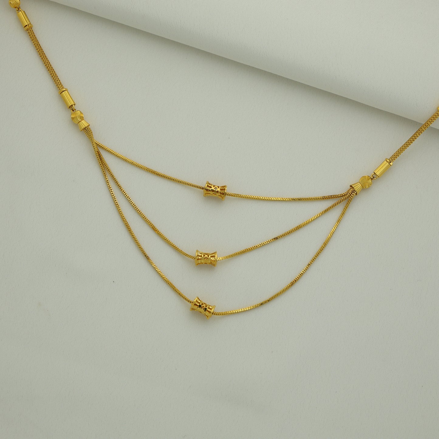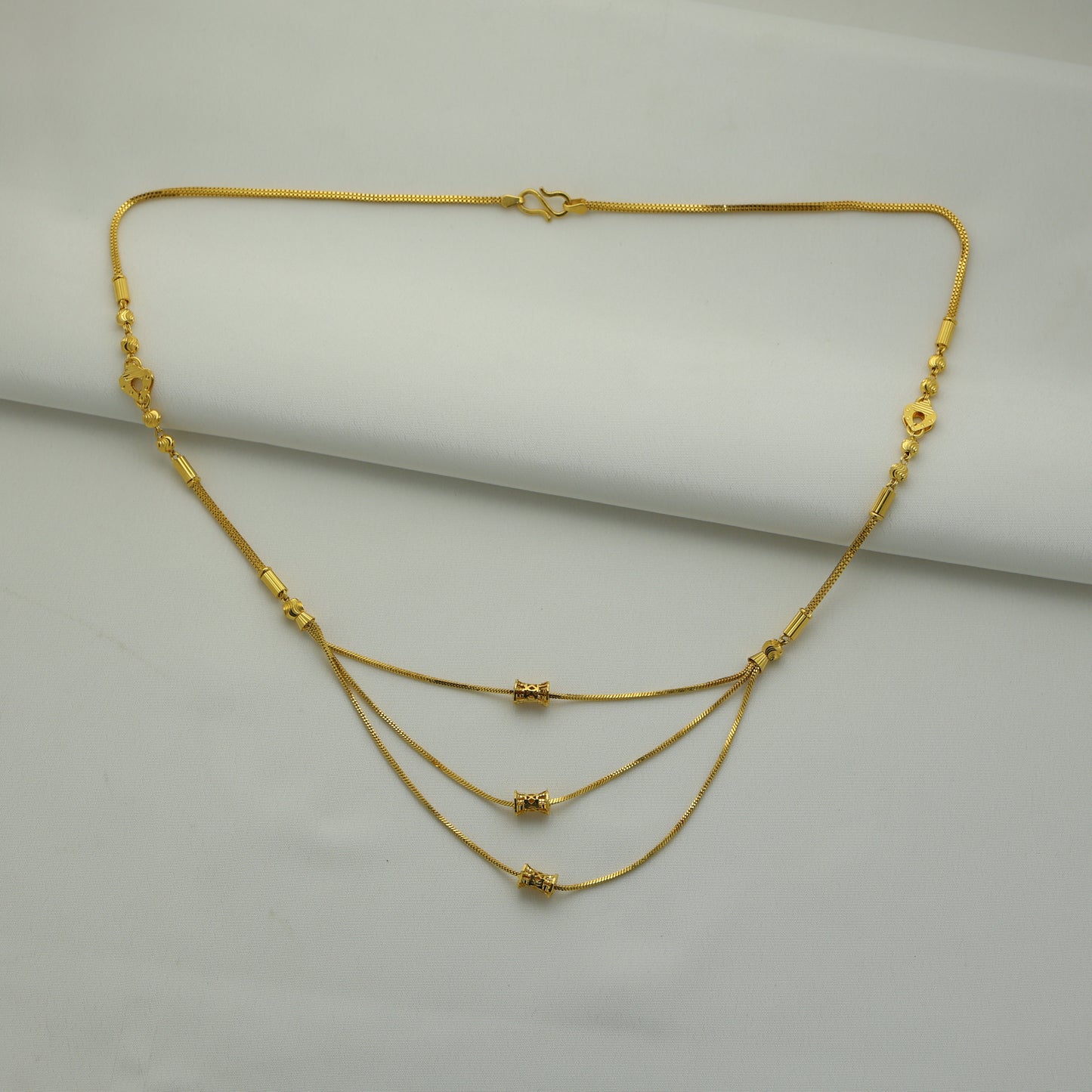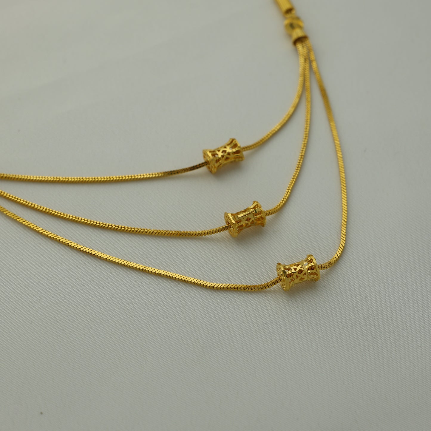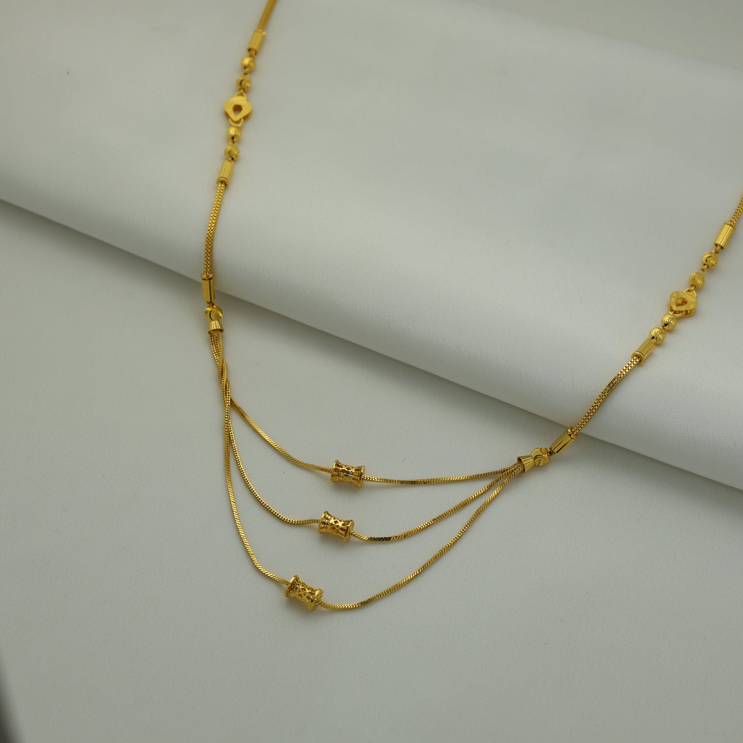 24Kt Gold Plated Layered Ladies Chain | Elegant 3 Layer Drop Necklace